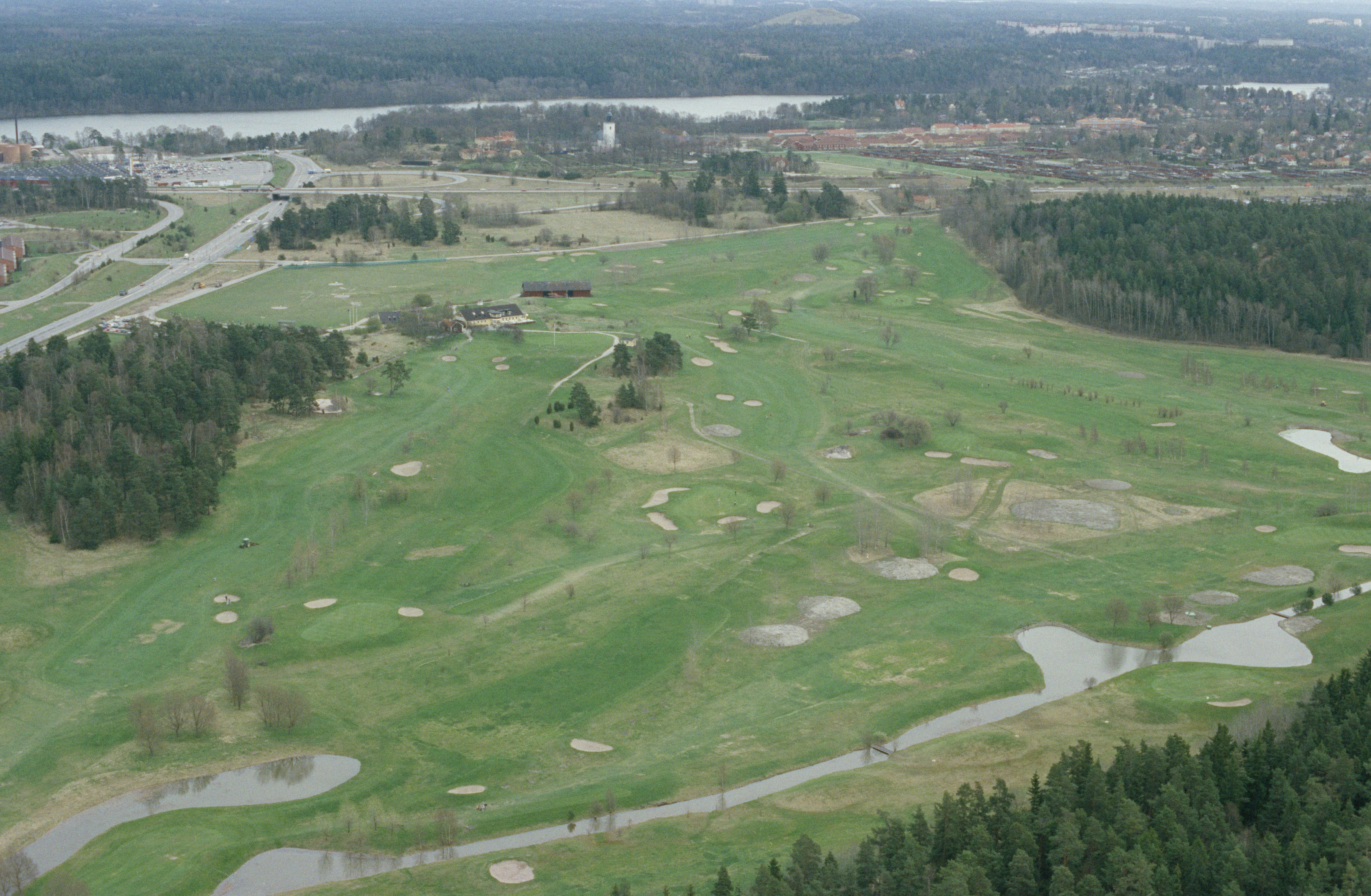 Beskrivning: Skillinge golfbana. Uppe till vänster gravfält RAÄnr Sollentuna 106:1 och Skillinge gamla tomt RAÄnr Sollentuna 107:1. Nere till höger gravfält RAÄnr Sollentuna 113:1 i Lillskogen. Sollentuna kyrka och sjön Norrviken i bildens övre del. Bilden är tagen mot (väderstreck): OSO