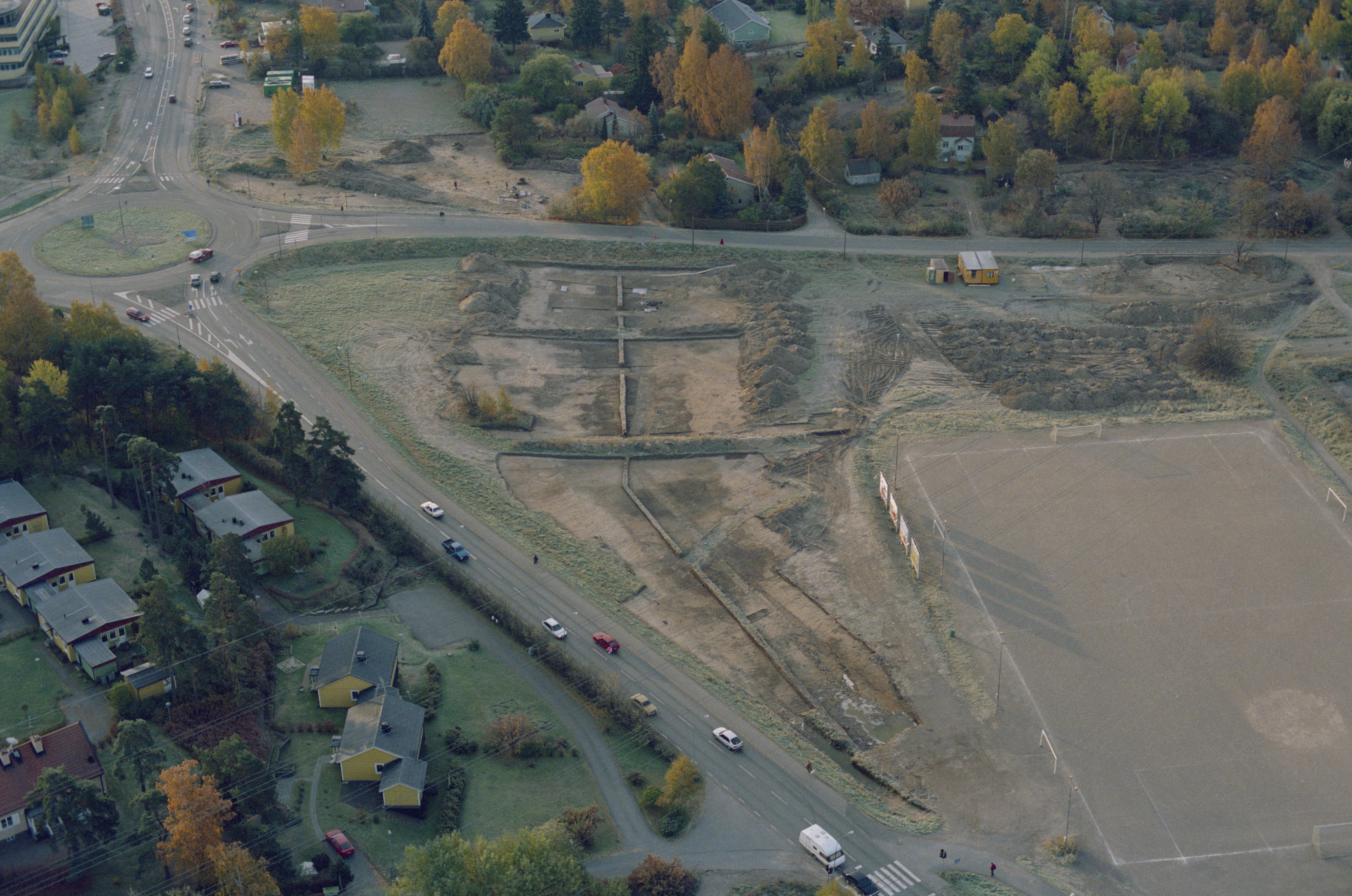 Beskrivning: Arkeologisk undersökning av boplats RAÄnr Sollentuna 334:1 i området vid korsningen Sollentunavägen och Danderydsvägen. Bilden är tagen mot (väderstreck): S