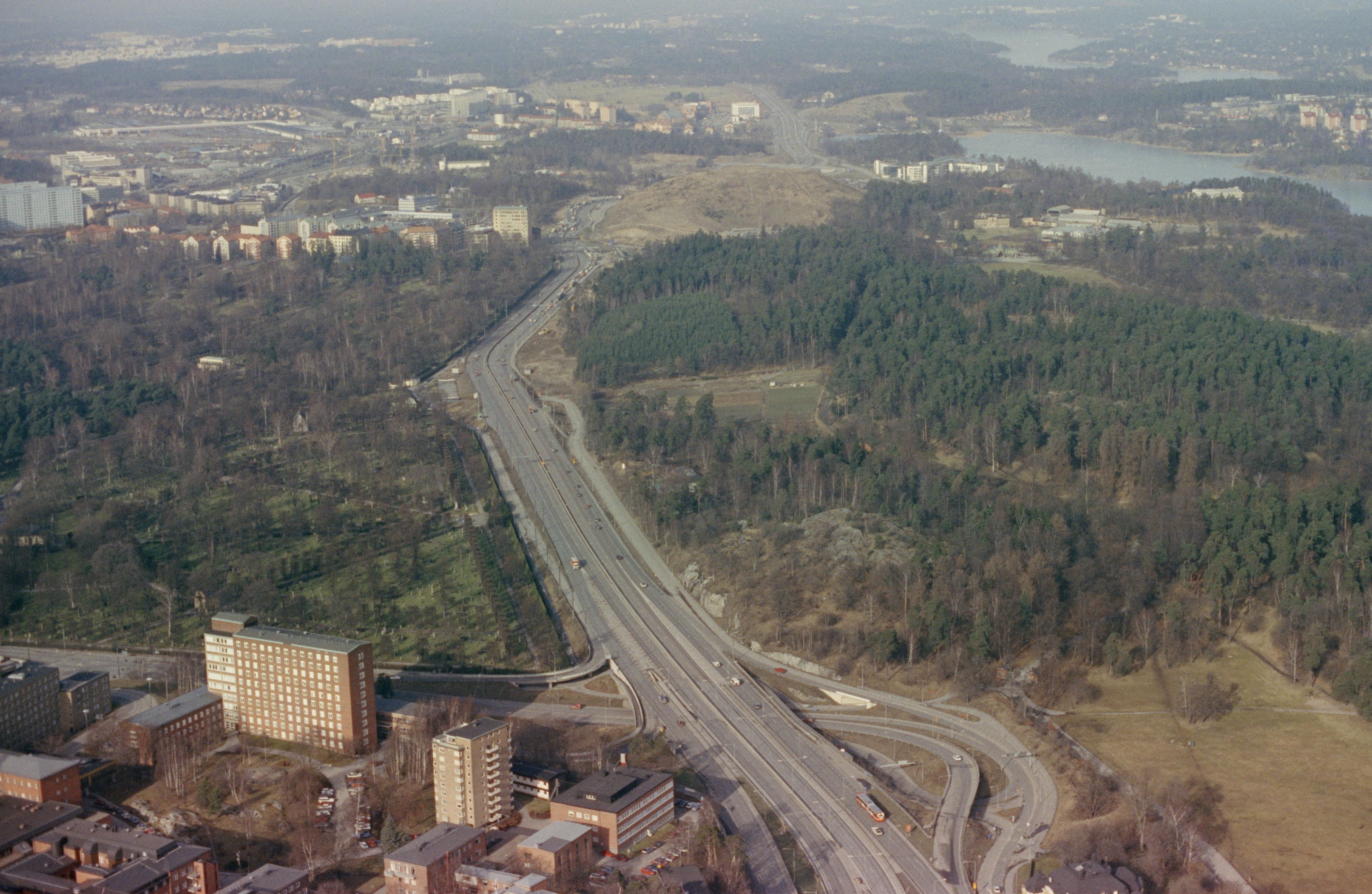 Beskrivning: Nere till vänster Karolinska Universitetssjukhuset. Till höger Haga Tingshus och Gamla Haga i Hagaparken RAÄnr Solna 30:1-3. I bildens övre del Hagahuset och Hagakullen i Haga Norra. Bilden är tagen mot (väderstreck): NV