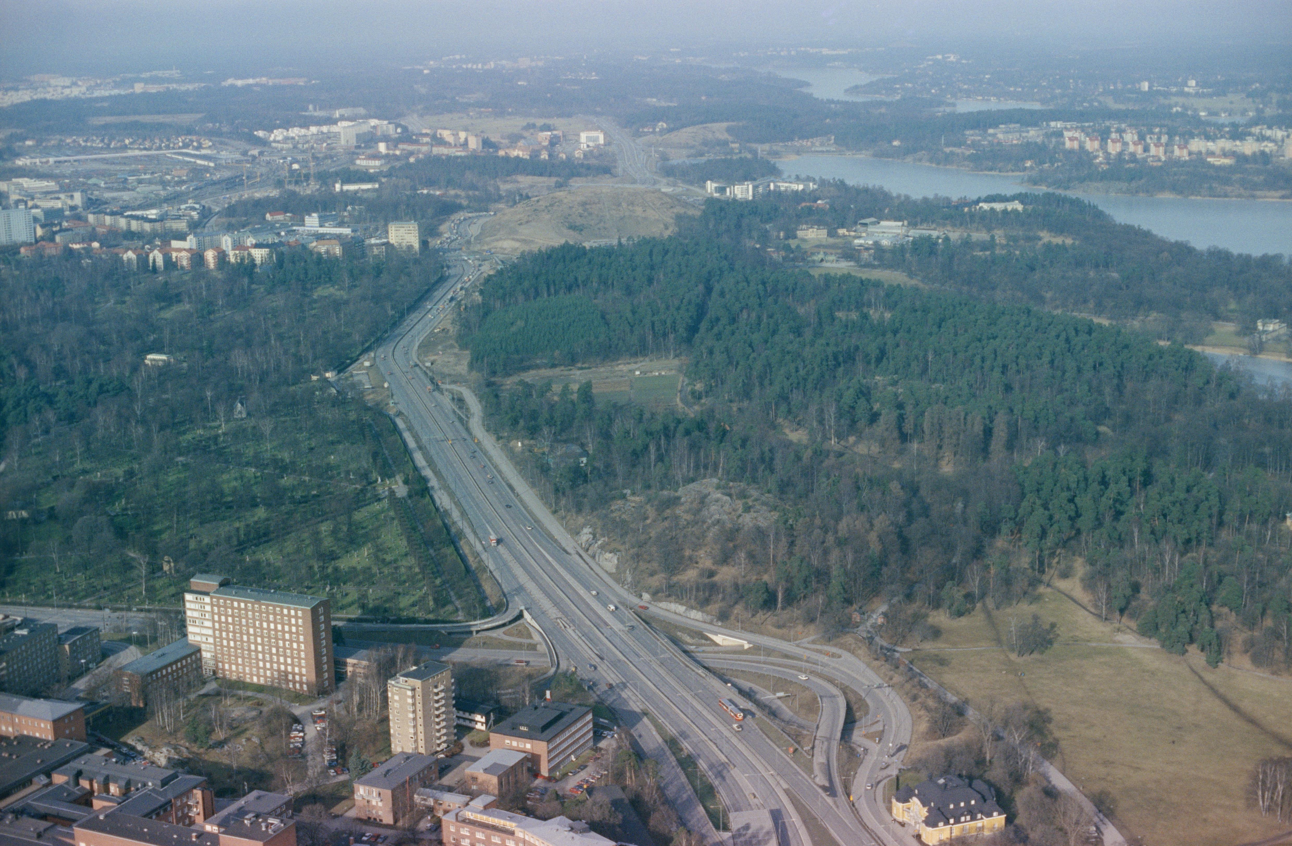 Beskrivning: Nere till vänster Karolinska Universitetssjukhuset. Till höger Haga Tingshus och Gamla Haga i Hagaparken RAÄnr Solna 30:1-3. I bildens övre del Hagahuset och Hagakullen i Haga Norra. Bilden är tagen mot (väderstreck): NV