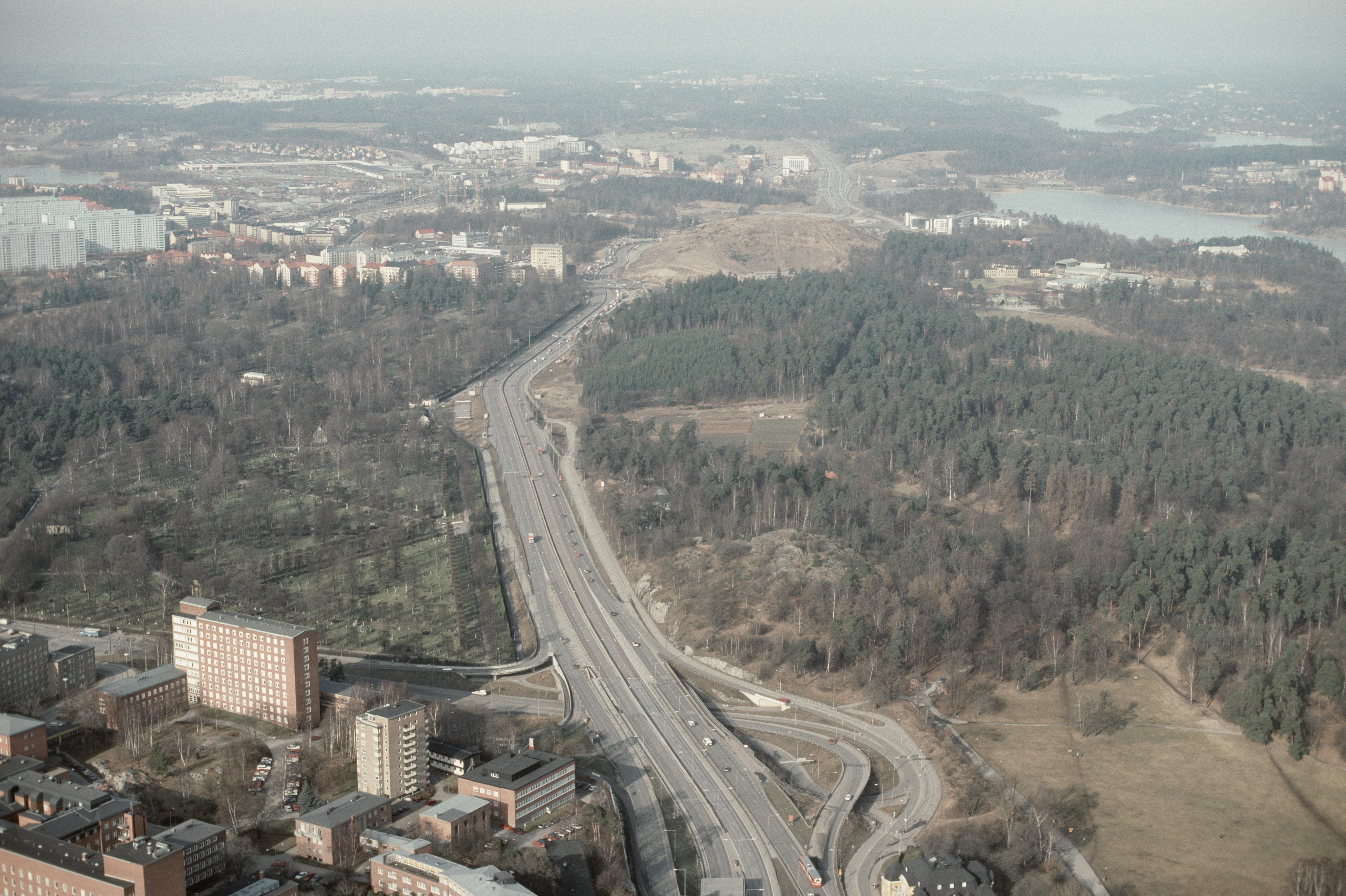 Beskrivning: Nere till vänster Karolinska Universitetssjukhuset. Till höger Haga Tingshus och Gamla Haga i Hagaparken RAÄnr Solna 30:1-3. I bildens övre del Hagahuset och Hagakullen i Haga Norra. Bilden är tagen mot (väderstreck): NV