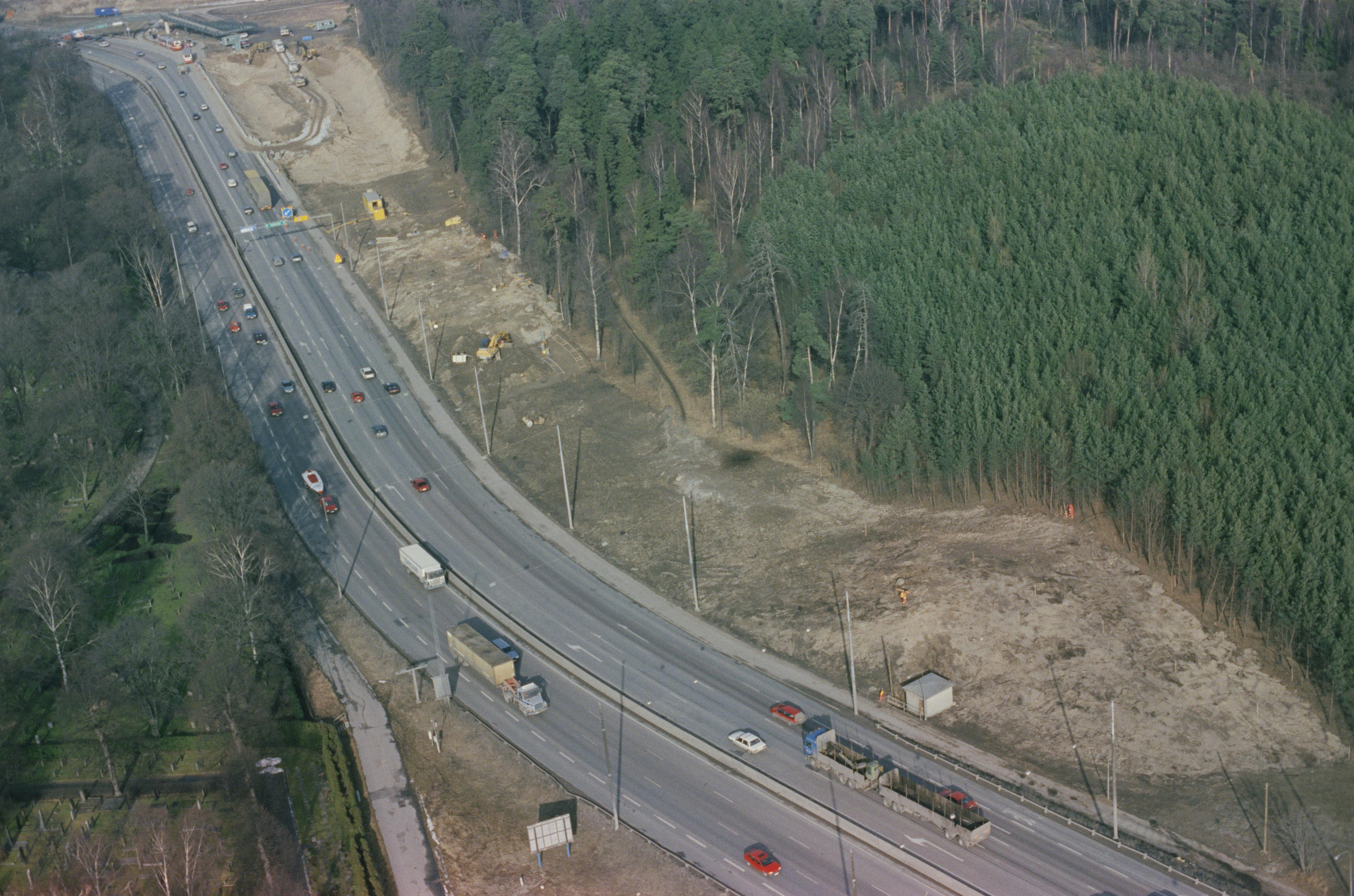 Beskrivning: Anmärkning (övrig): Riksintresse-nr/namn: AB37 - Solna. Socken: Solna. Motivering: A. Sockencentrum för den stora Solna socken, som ursprungligen innefattade hela nuvarande Stockholms innerstad, framför allt präglat av 1100-talets rundkyrka med senare tillbyggnader och tillhörande bebyggelse från främst 1700-talet. - B. Haga - Ulriksdals kungliga slottsmiljöer med lustslott och stora parkanläggningar med nära vattenkontakt, som i sin utveckling framför allt speglar stormaktstiden, den gustavianska epoken och 1800-talets första hälft. Miljöerna har ett nära samband med ett större område dominerat av kungarna och staten. - C. Norra begravningsplatsen, invigd 1827, som i planering och anläggningar visar begravnin(…) Texten i detta fält har förkortats vid migrering till e-arkivet. Se filbilagan extra.xml för fullständig information under note_archivist. Beskrivning: Arkeologisk undersökning vid väg E4 mellan Norra begravningsplatsen och Hagaparken. Boplats RAÄnr Solna 85:1. Bilden är tagen mot (väderstreck): N Fotosyfte: Flygbildsdokumentation