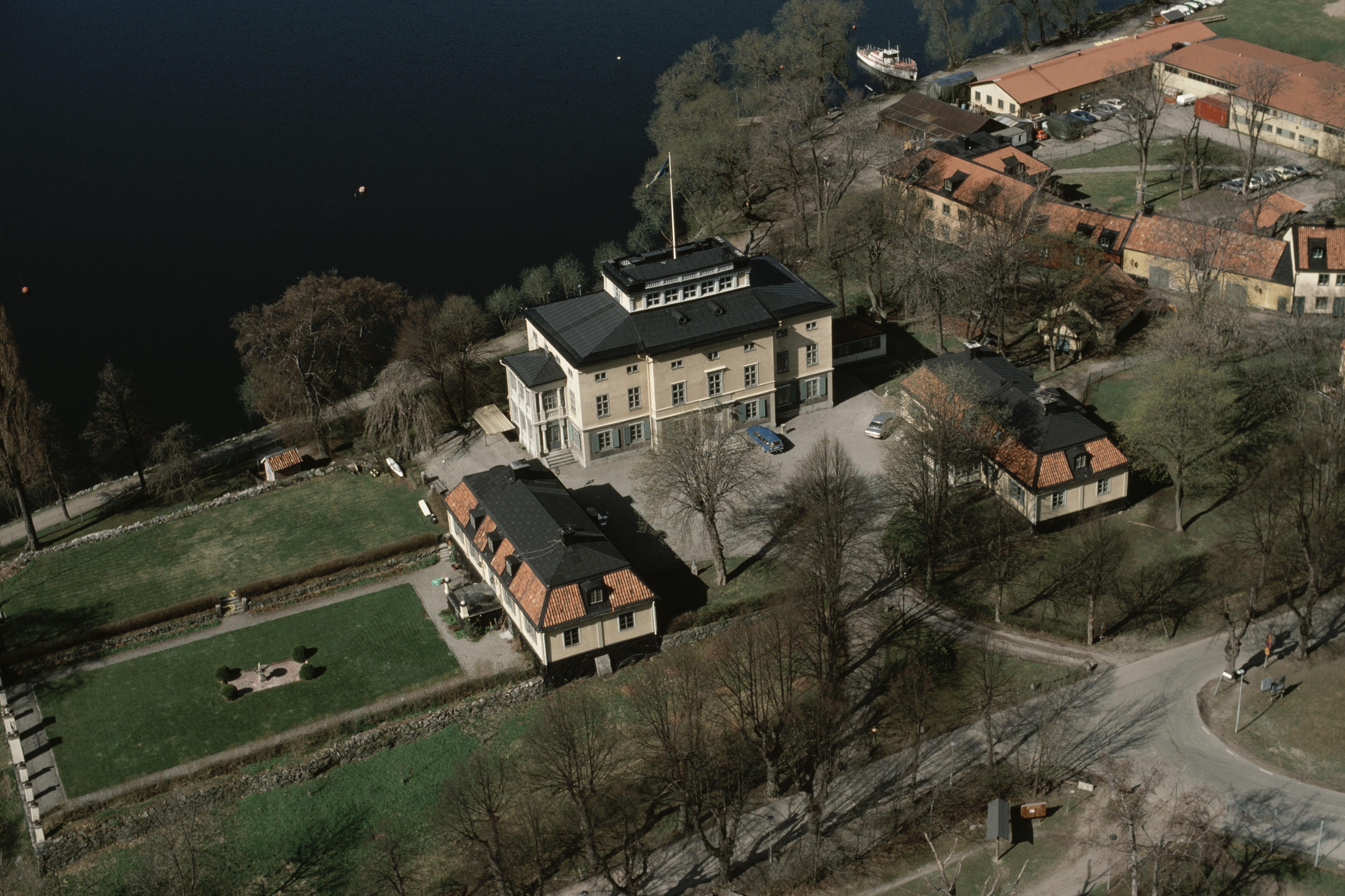 Beskrivning: Huvudsta herrgård (skrivs även Huvudsta gård) RAÄnr Solna 66:1 vid viken Ulvsundasjön i Mälaren. Bilden är tagen mot (väderstreck): VSV