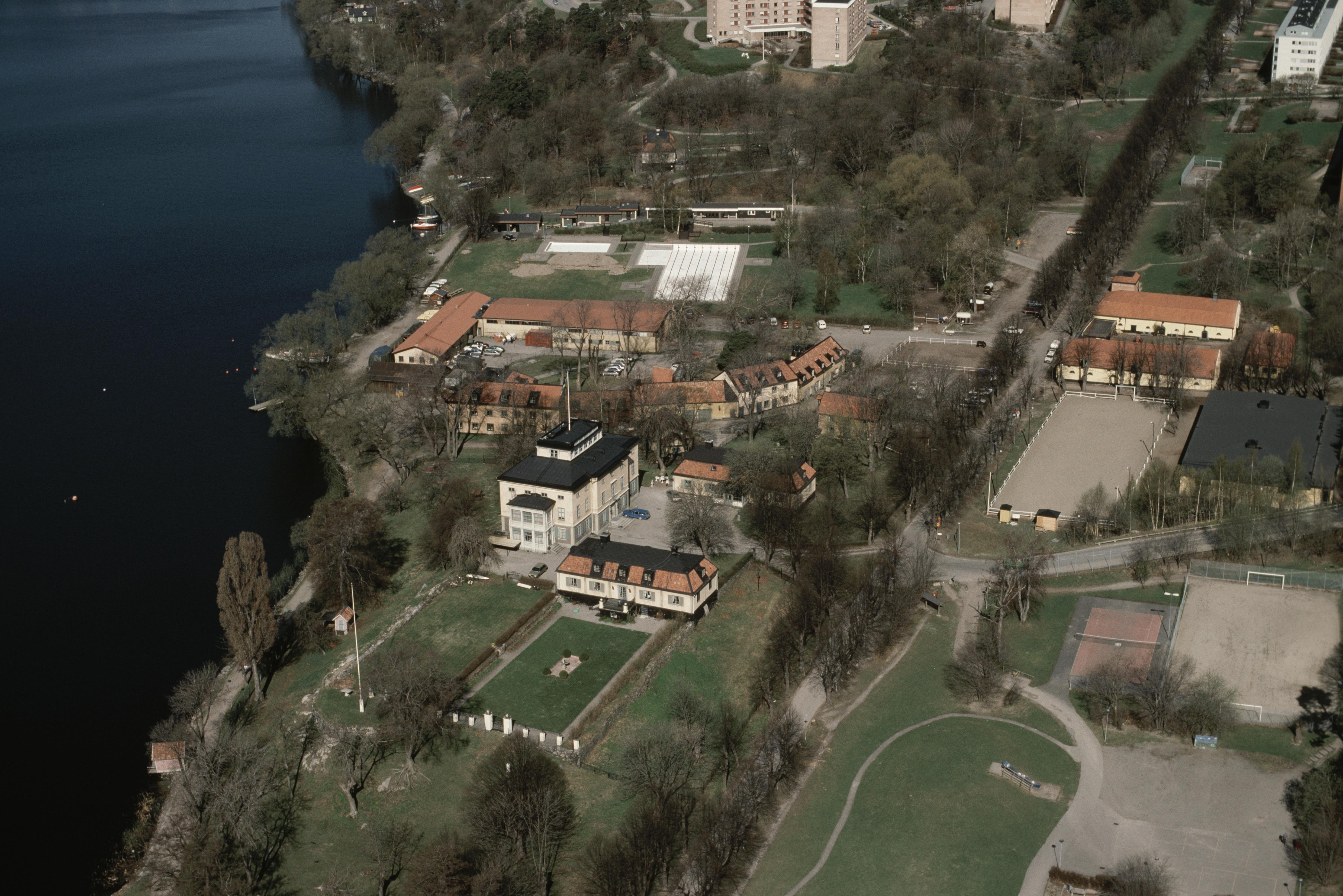 Beskrivning: Huvudsta herrgård (skrivs även Huvudsta gård) RAÄnr Solna 66:1 vid viken Ulvsundasjön i Mälaren. Bilden är tagen mot (väderstreck): VNV