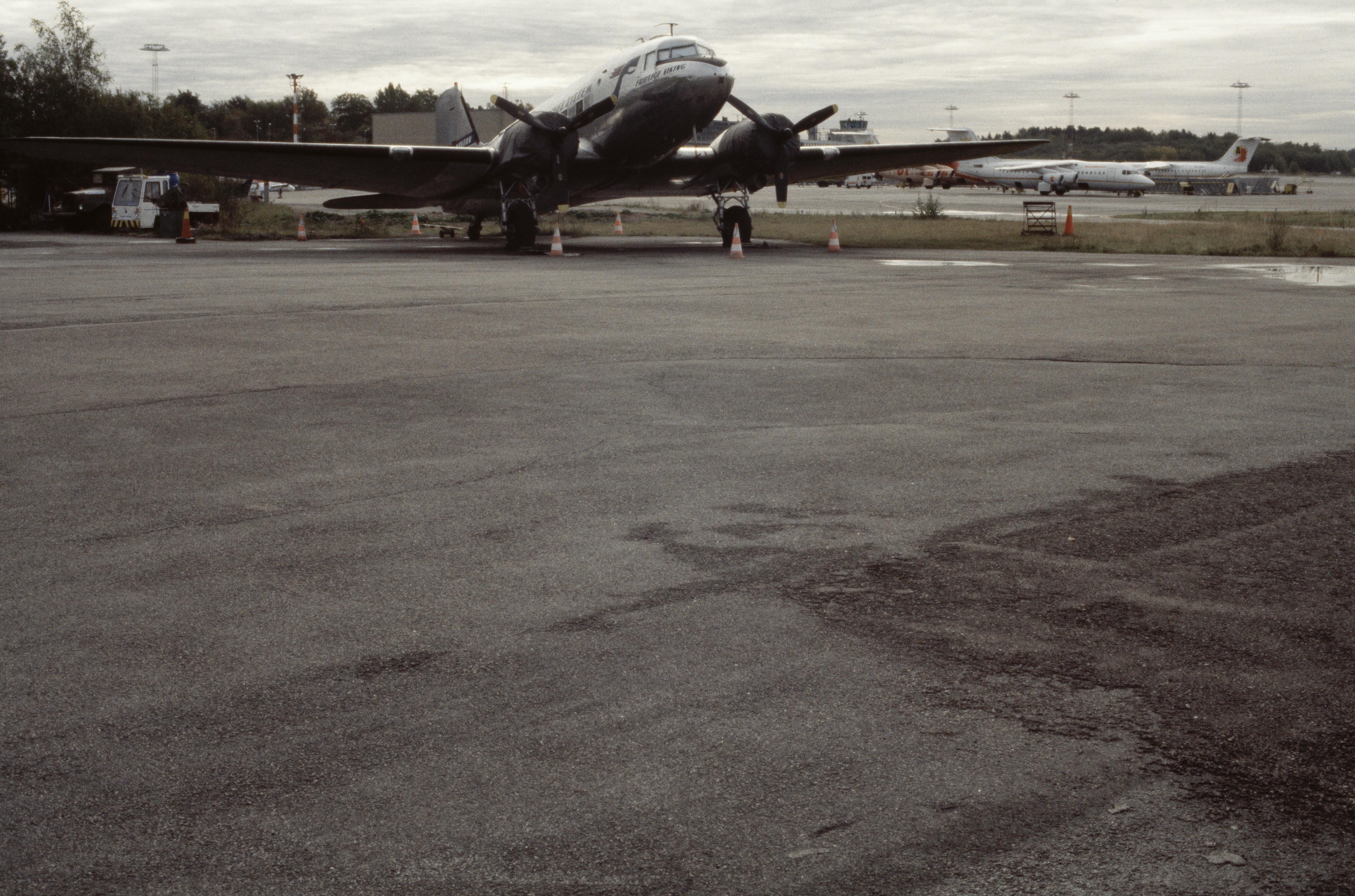 Beskrivning: Flygplanet "Fridtjof Viking" på Bromma flygplats i stadsdelen Bromma i Stockholms Västerort. Bilden är tagen vid landning på flygplatsen. Bilden är tagen mot (väderstreck): NO