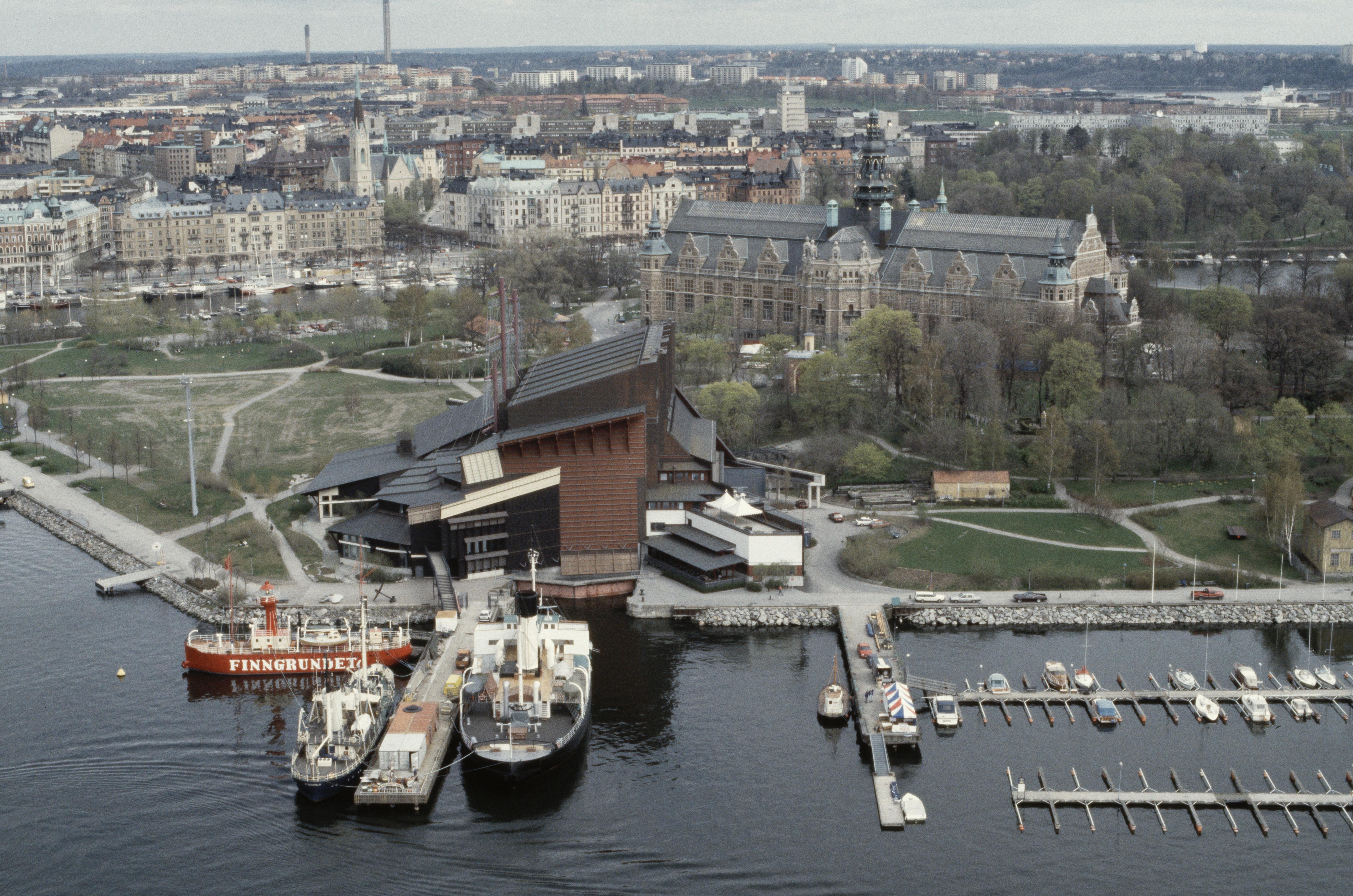 Beskrivning: Vasamuseet vid Saltsjön i bildens nedre del. Vid bildens mitt Nordiska museet - statligt byggnadsminne RAÄnr Stockholm 89:1. I bildens övre del Östermalm med Strandvägen, Oscarskyrkan vid Narvavägen, Djurgårdsbrunnsviken, m.m. Bilden är tagen mot (väderstreck): NNO