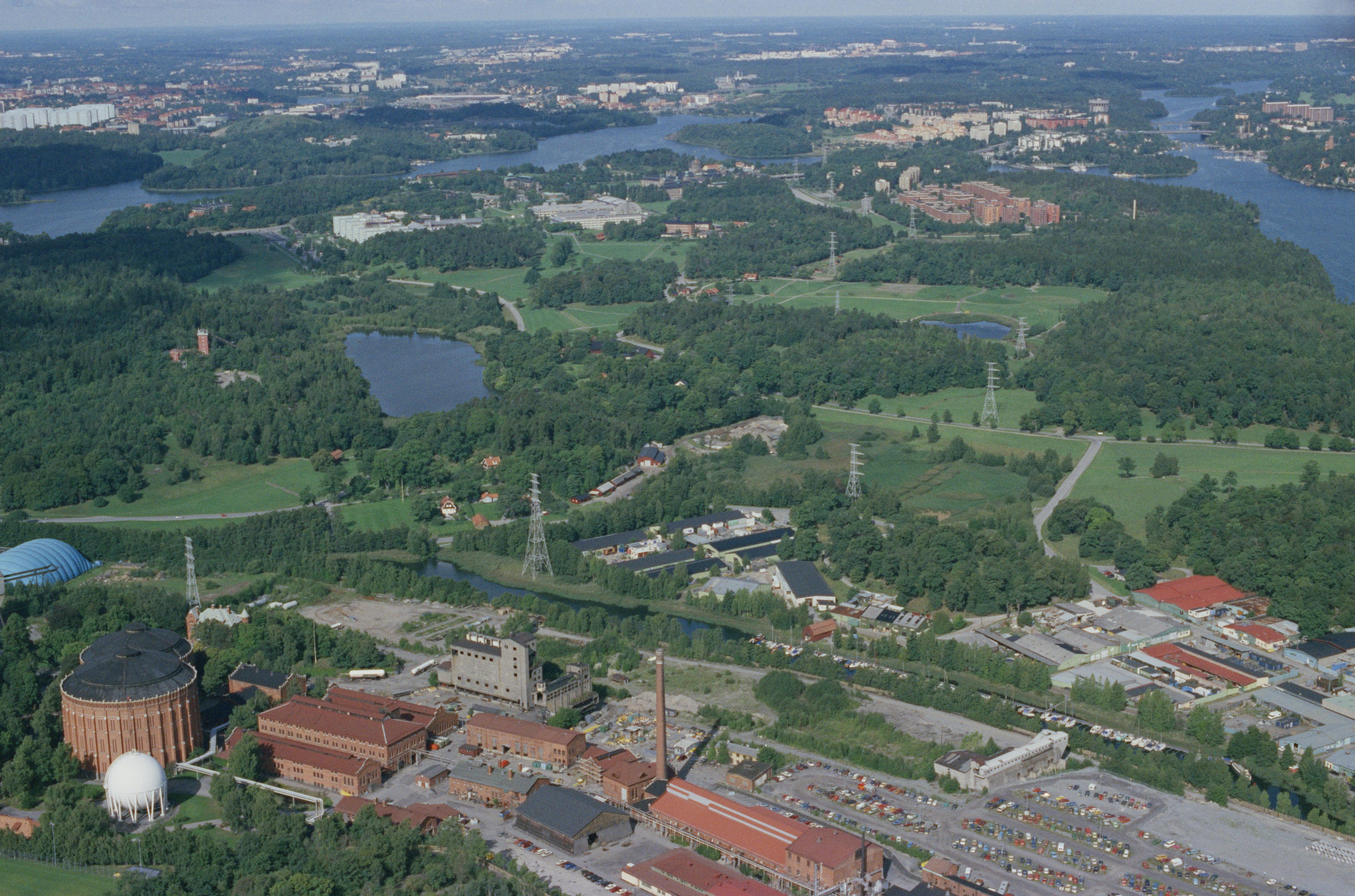 Beskrivning: Husarviken vid Hjorthagen. I bildens nedre del Värtagasverket och Fiskartorpet. Vid bildens mitt sjön Laduviken och gården Stora Skuggan statligt byggnadsminne RAÄnr Stockholm 84:1. I bildens övre del Brunnsviken mot Solna och till höger fjärden Lilla Värtan mot Danderyd. Bilden är tagen mot (väderstreck): VNV