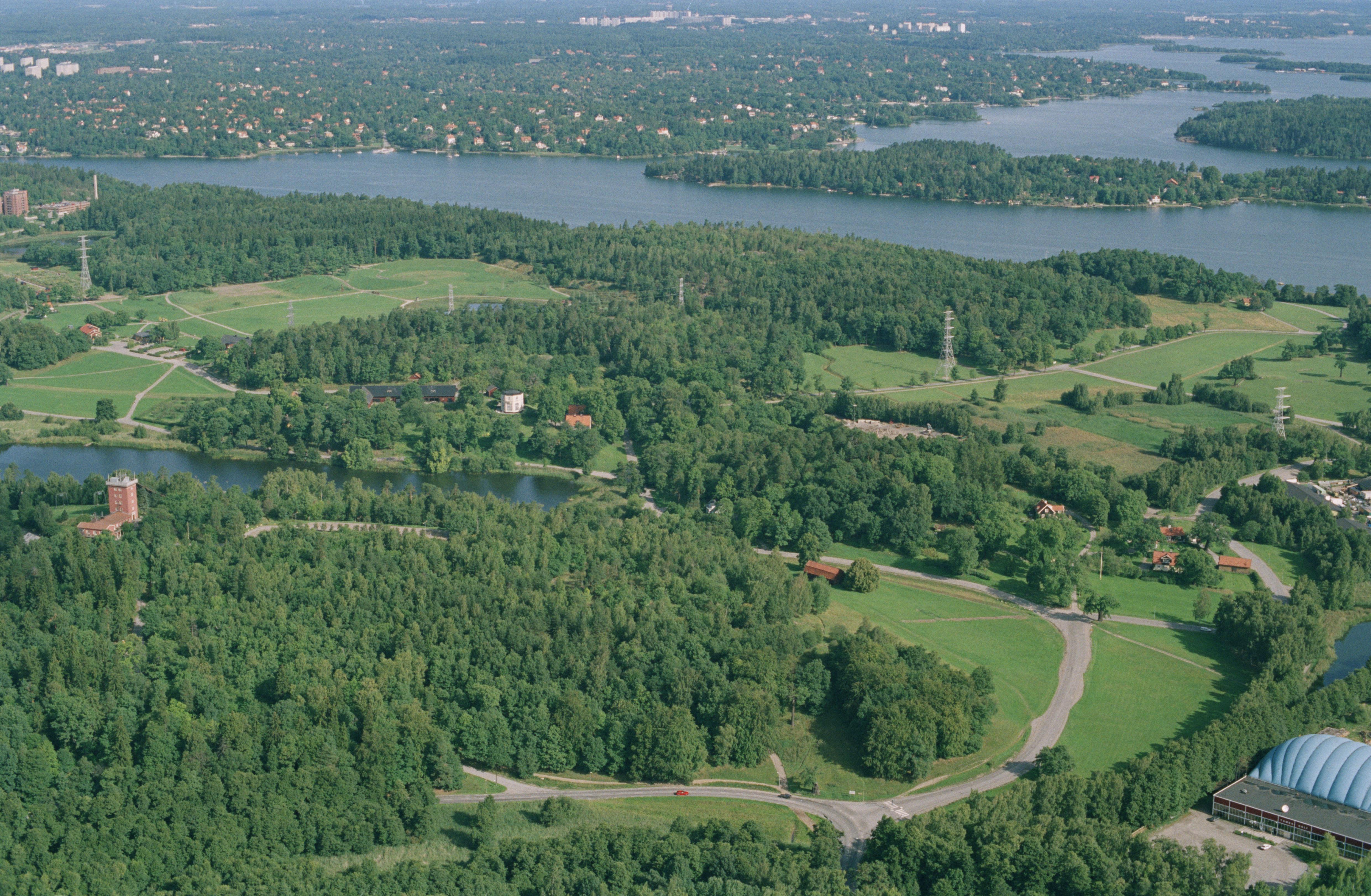 Beskrivning: Till vänster sjön Laduviken och Fiskartorpet och gården Stora Skuggan statligt byggnadsminne RAÄnr Stockholm 84:1. Nere till höger Husaviken i norra delen av Hjorthagen. I bildens övre del fjärden Lilla Värtan mot Lidingö. Bilden är tagen mot (väderstreck): N