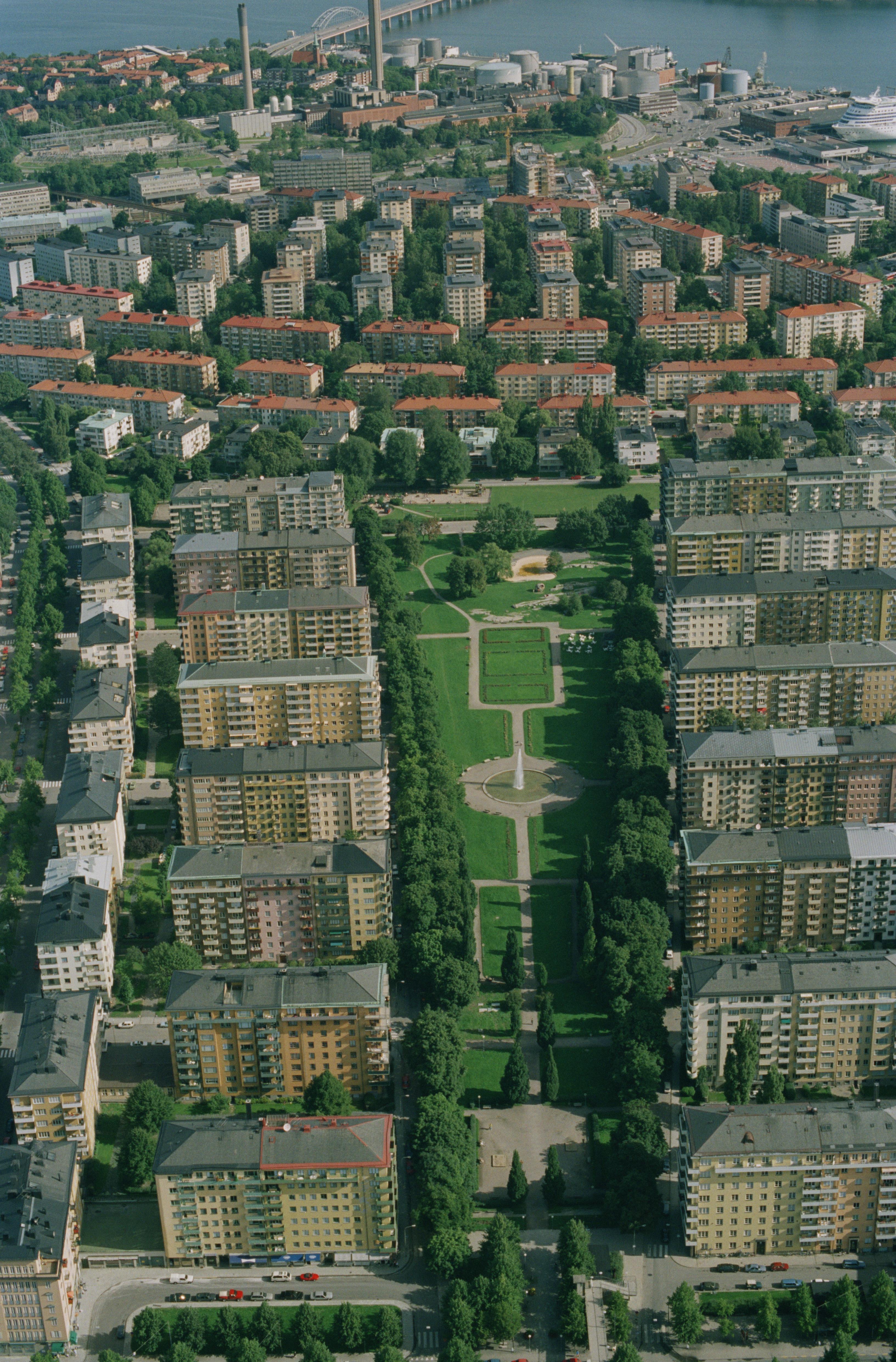 Beskrivning: Gärdet. Tessinparken, Gärdesstaden mot Värtahamnen. Bilden är tagen mot (väderstreck): NNO