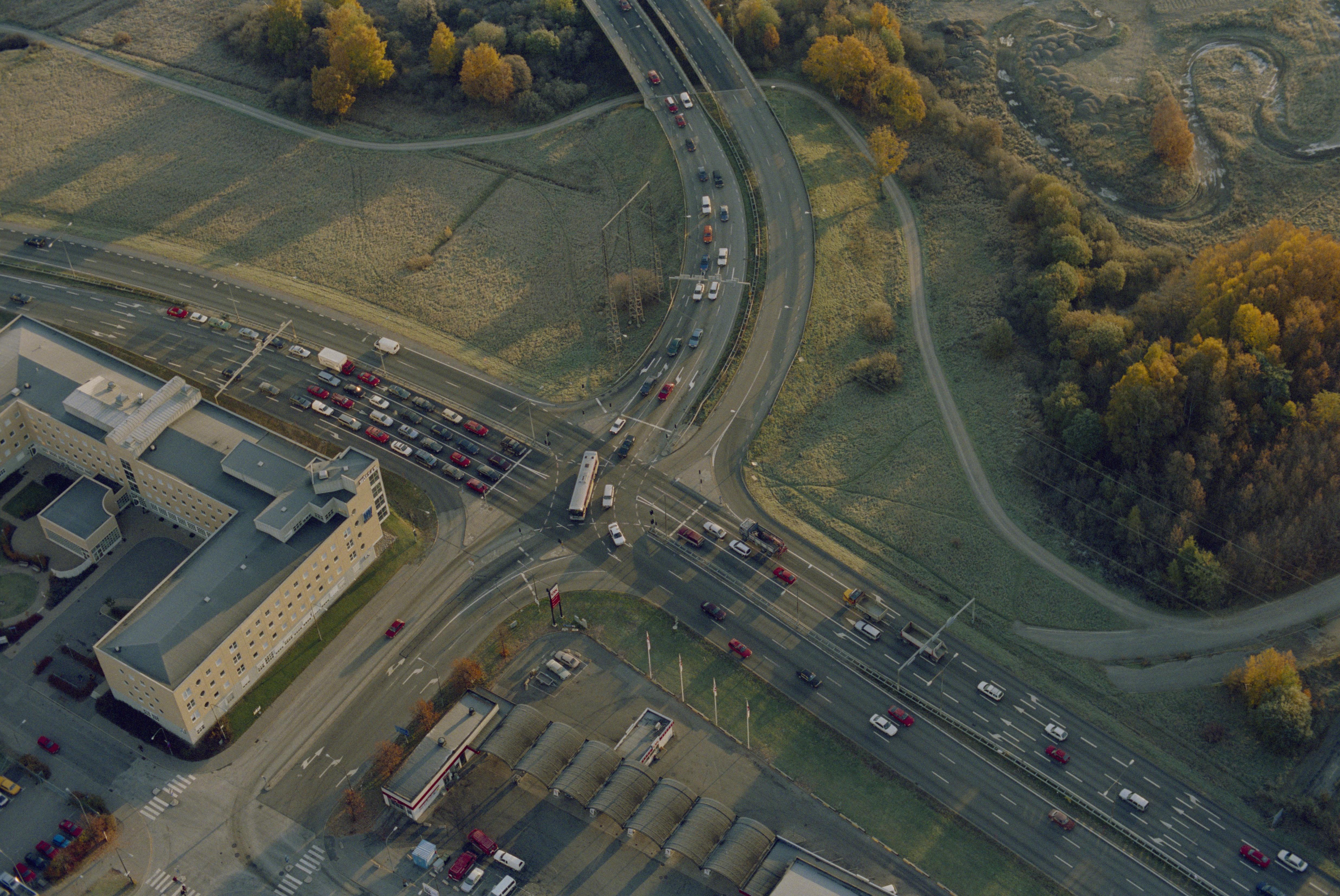Beskrivning: Området Rinkeby vid Ulvsundavägen som markerar gränsen mot socknet Stockholm (nere till höger). Vid Rinkebymotet i bildens mitt hägnad RAÄnr Stockholm 782. Bilden är tagen mot (väderstreck): ONO