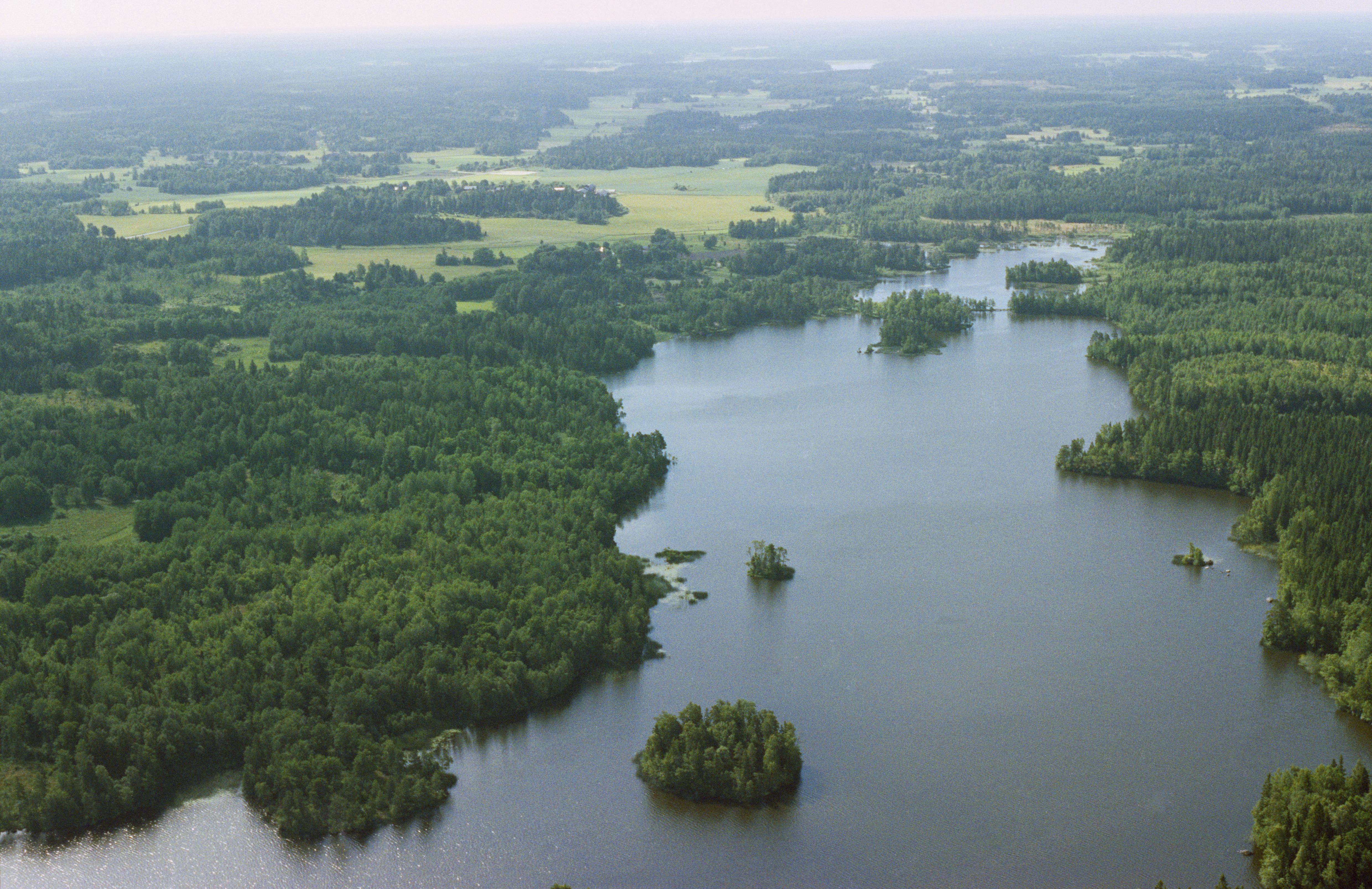 Beskrivning: Sjön Ströjan. Ströja by och Lillsjön i bildens övre del. Till vänster om bildens mitt fornborg RAÄnr Söderby-Karl 39:1. Bilden är tagen mot (väderstreck): SSO
