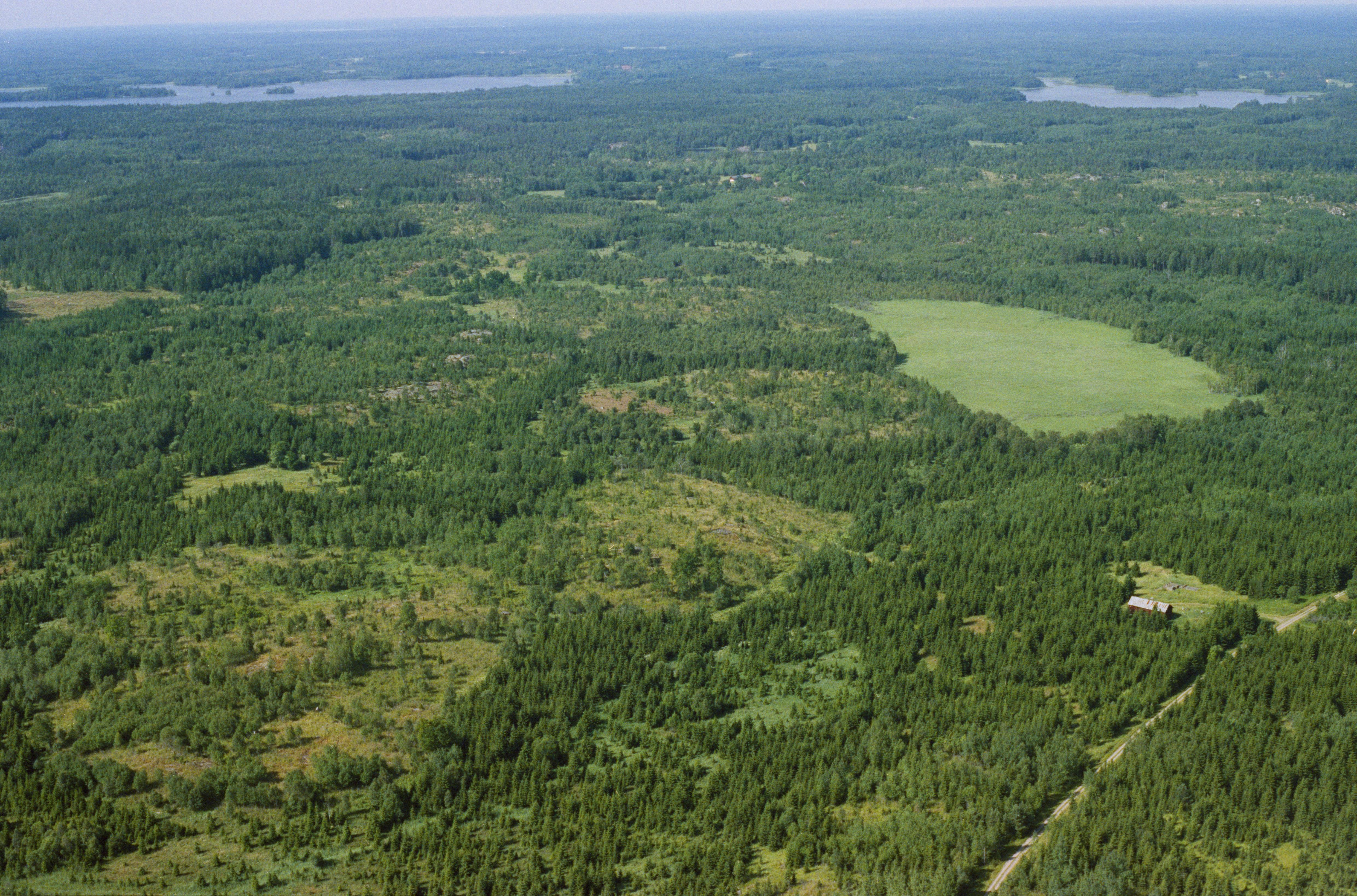 Beskrivning: Området Vagnåla vid Tomasbol och Rudsjön. Röse RAÄnr Ununge 167:1-2, 176:1 m.fl vid bildens mitt. I bildens övre del socknen Estuna och Edsbro. Bilden är tagen mot (väderstreck): SV