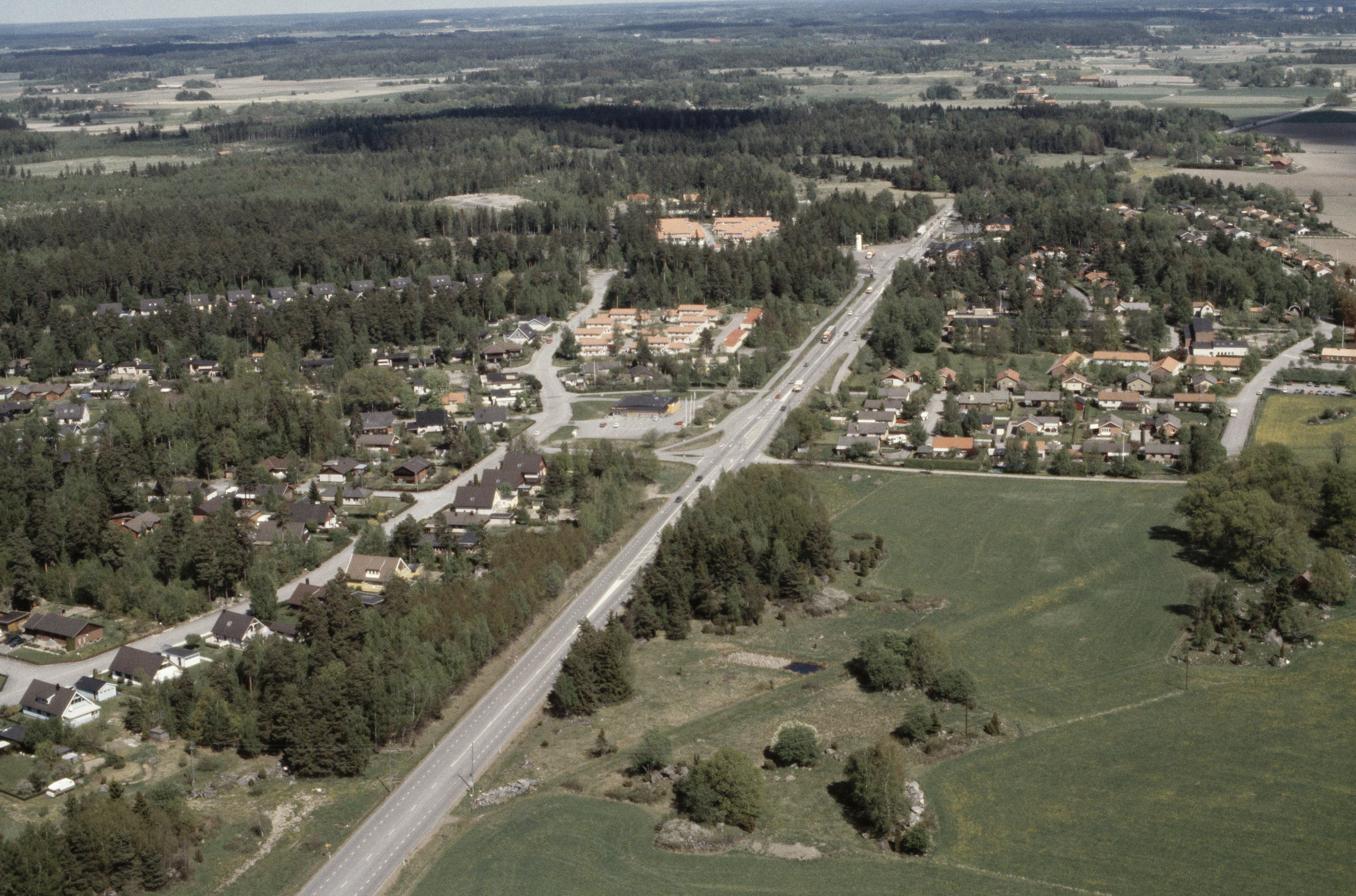 Beskrivning: Hummelsta tätort. Vid bildens mitt gravfält RAÄnr Tillinge 120:1. Bilden är tagen mot (väderstreck): NO