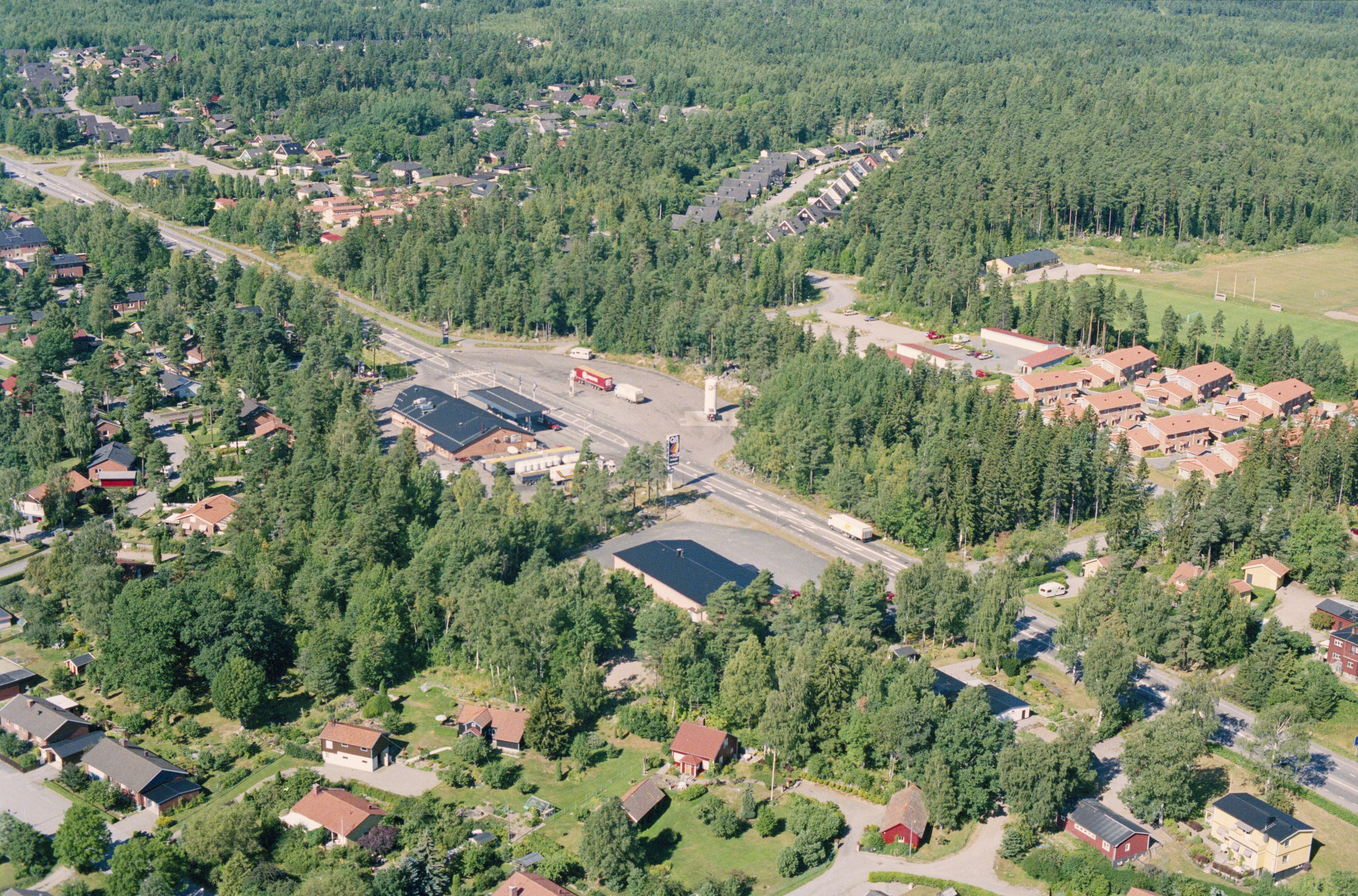 Beskrivning: Hummelsta tätort. Till vänster om bildens mitt Hummelstabaren - en bensinstation och restaurang som startades 1959. Bilden är tagen mot (väderstreck): V