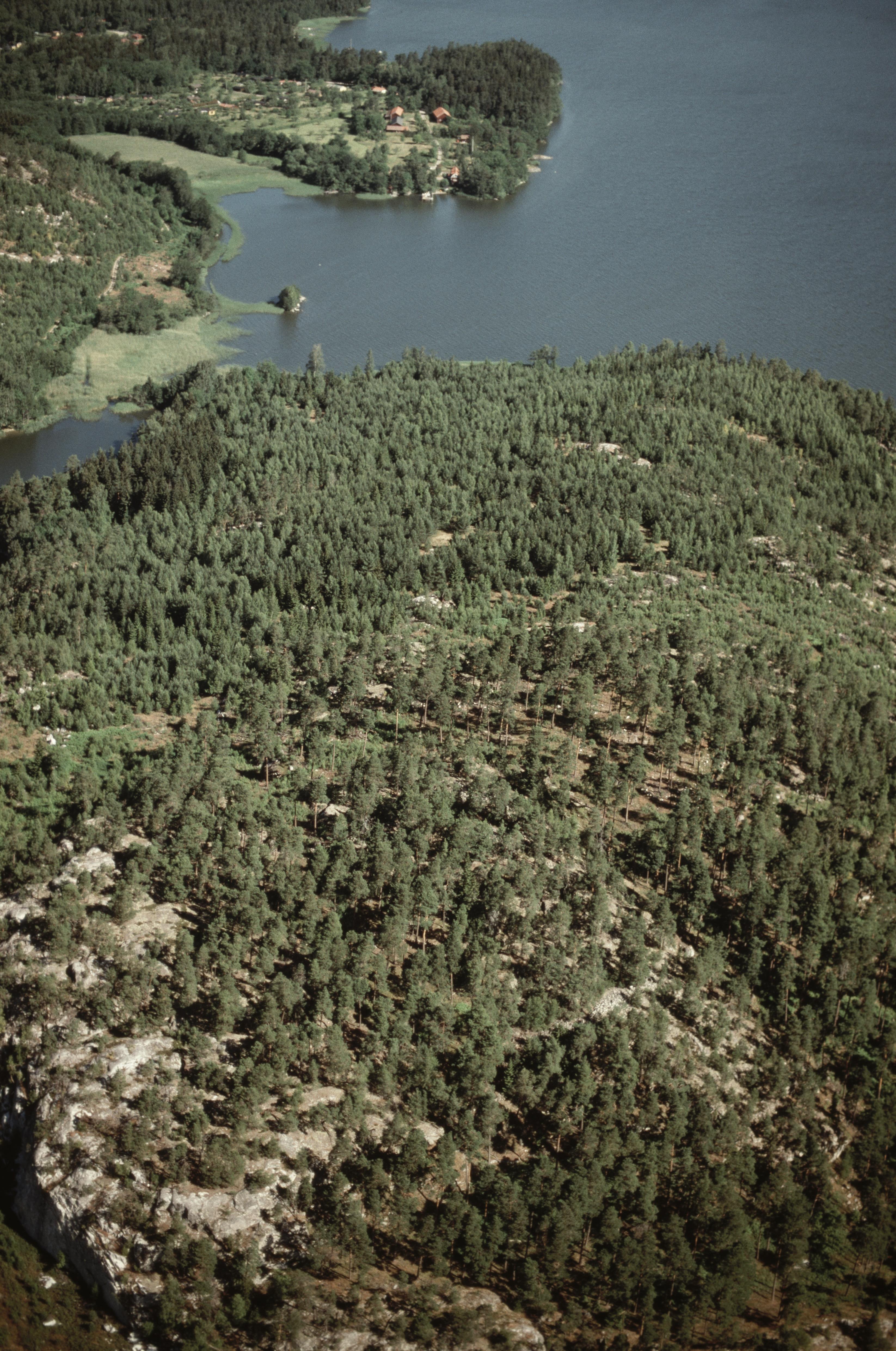 Beskrivning: Norra Björkfjärden i Mälaren. Fornborg och röse RAÄnr Torsvi 16:1-2 på Ytterholmen, söder om Brandholmssunds by. Bilden är tagen mot (väderstreck): N