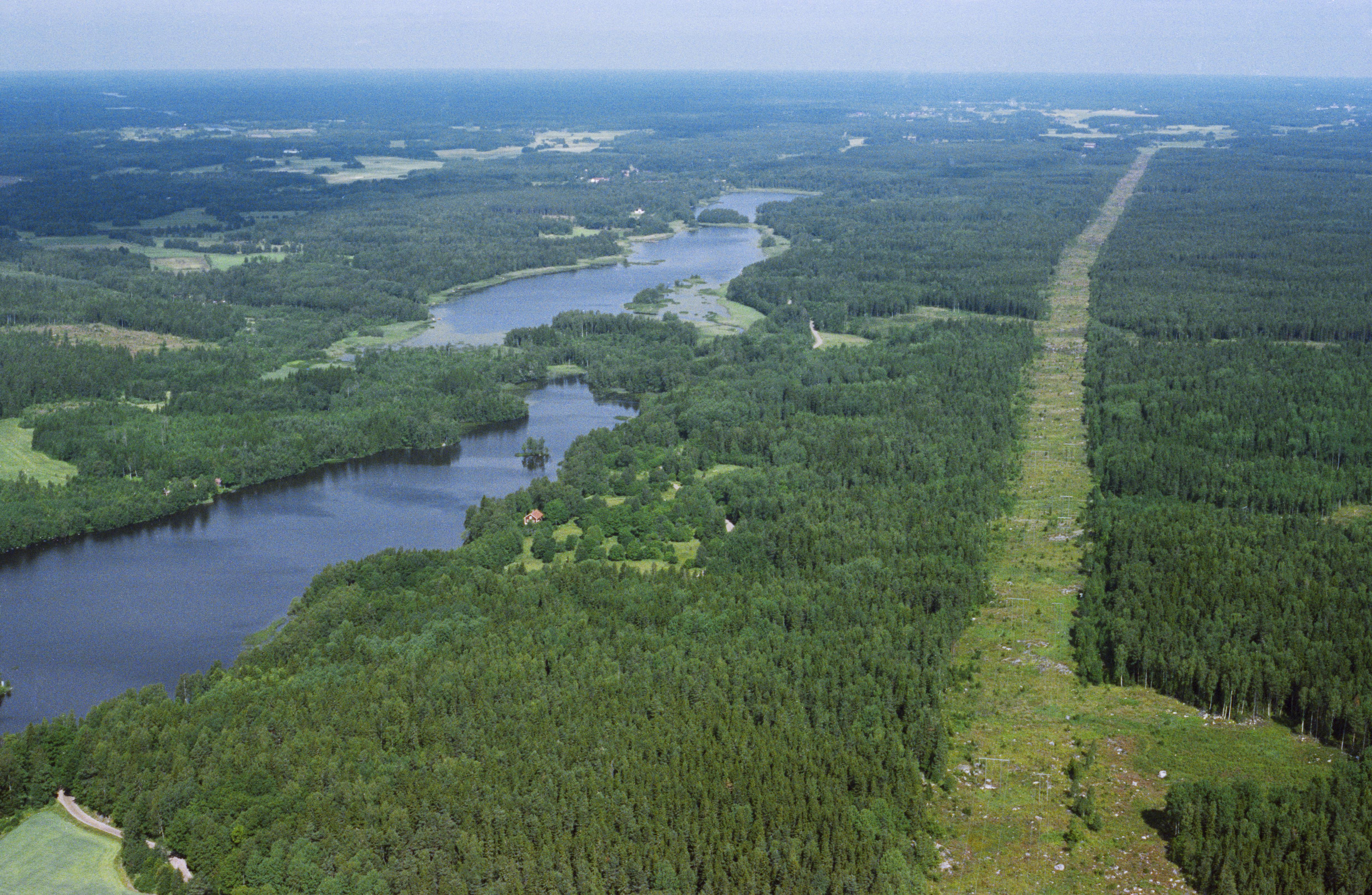 Beskrivning: Vid bildens mitt Skattbolsgrundet i sjön Närdingen. Uppe till höger i bildens övre del Skebobruk RAÄnr Ununge 127:1. Bilden är tagen mot (väderstreck): NNV