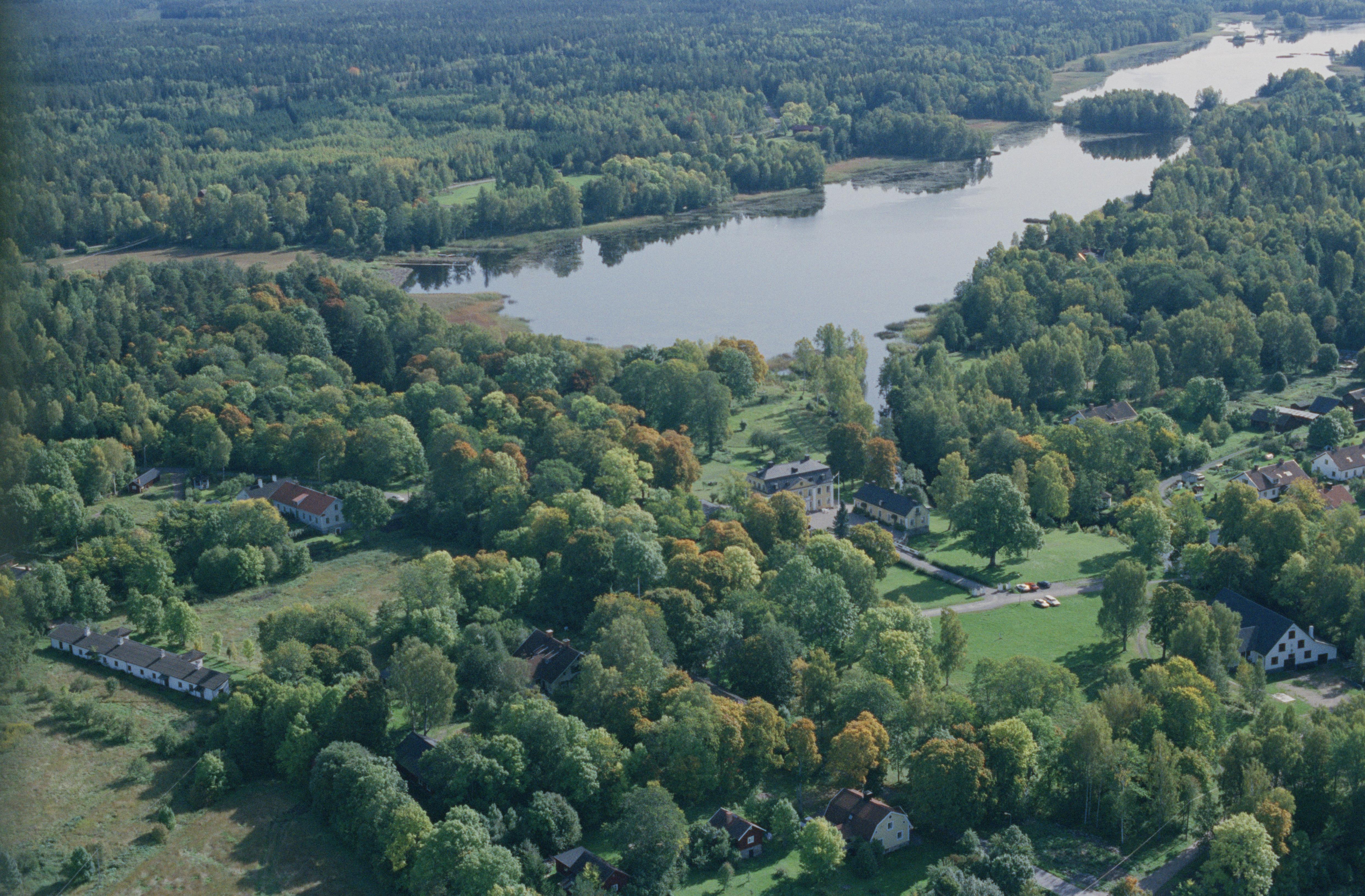 Beskrivning: Skebobruk RAÄnr Ununge 127:1 vid Skeboån och sjön Närdingen. Vid bildens mitt Skebobruks herrgård. Bilden är tagen mot (väderstreck): SO