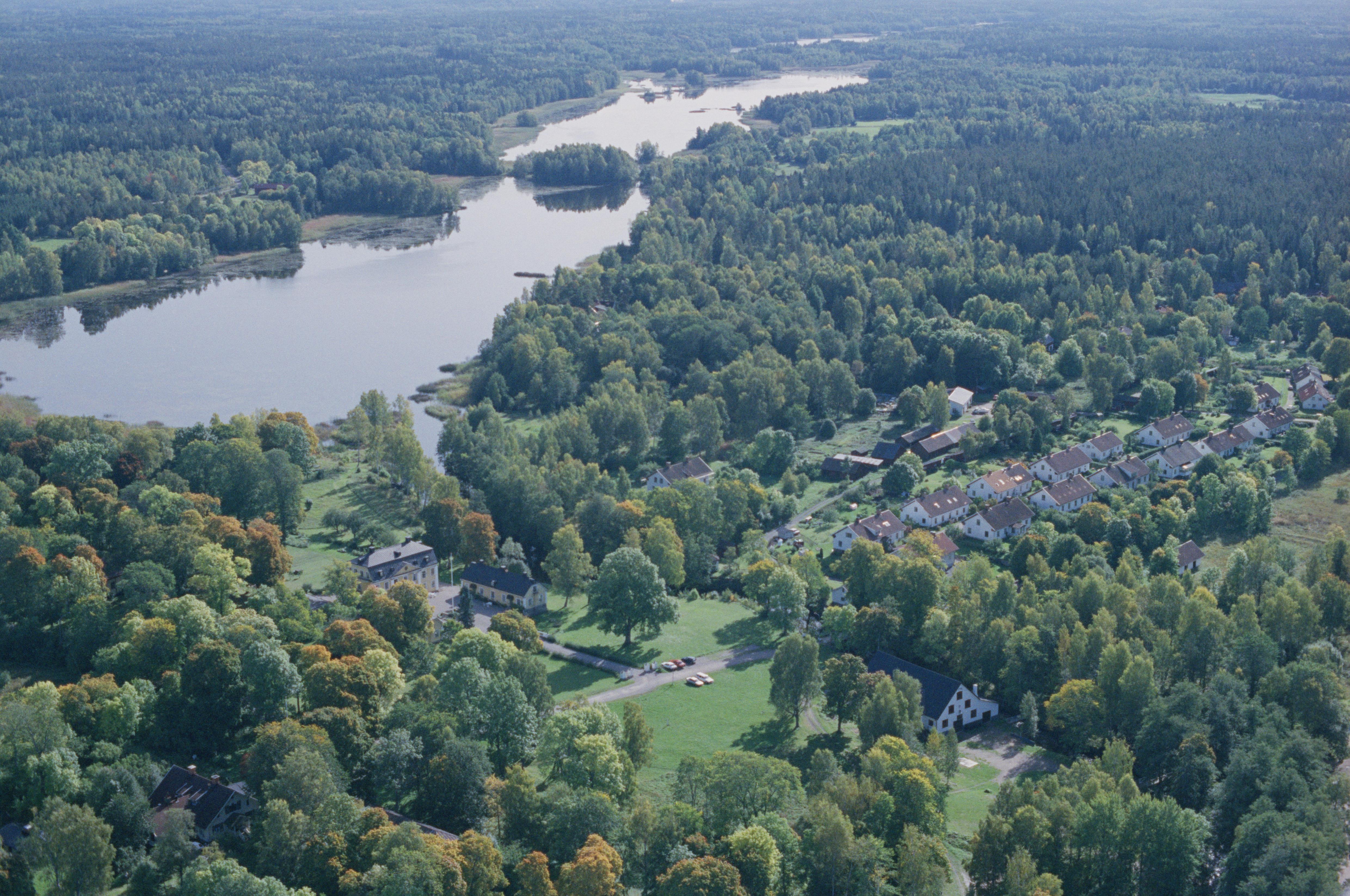 Beskrivning: Skebobruk RAÄnr Ununge 127:1 vid Skeboån och sjön Närdingen. Till vänster under bildens mitt Skebobruks herrgård. Bilden är tagen mot (väderstreck): SO