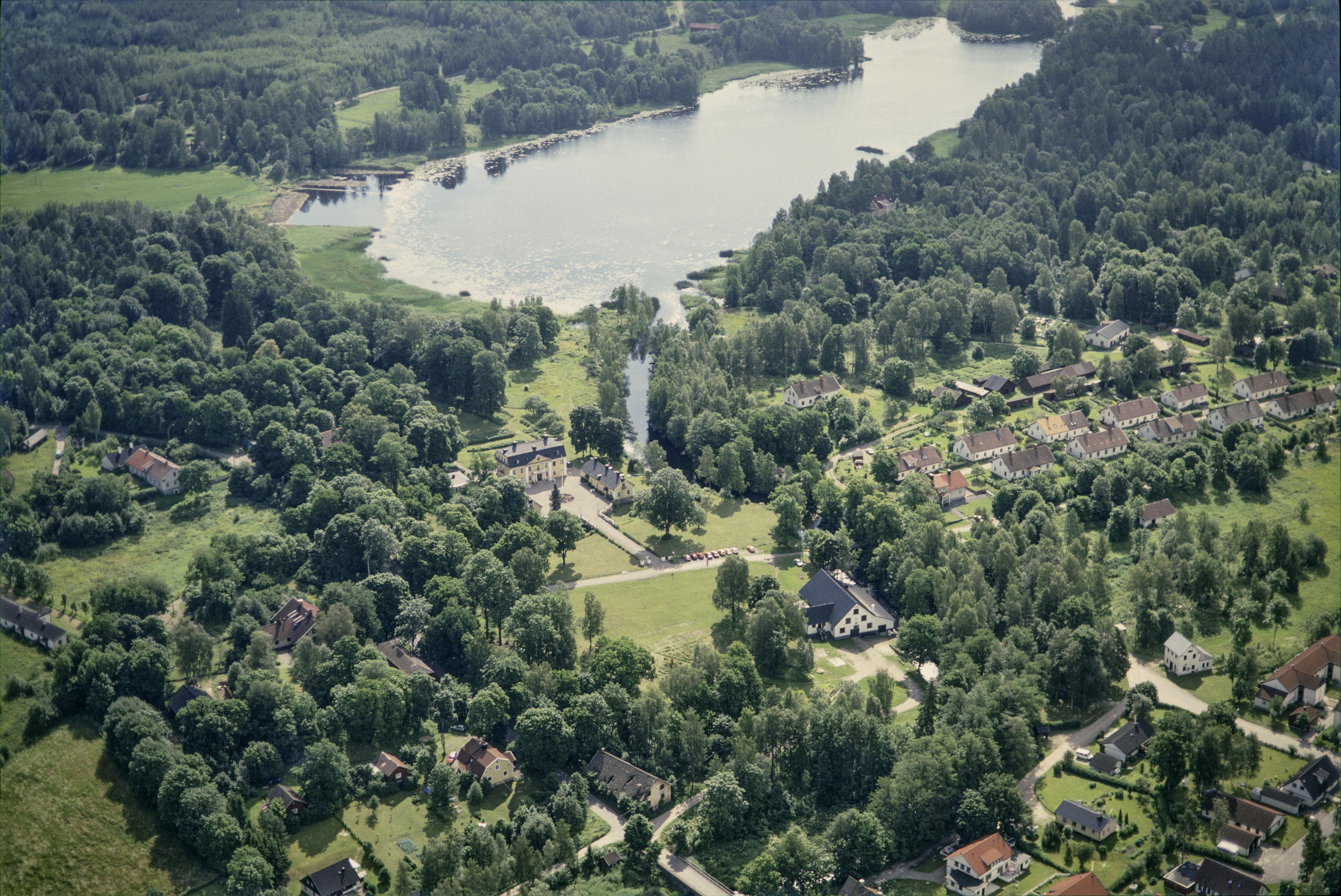 Beskrivning: Skebobruk RAÄnr Ununge 127:1 vid Skeboån och sjön Närdingen. Vid bildens mitt Skebobruks herrgård. Bilden är tagen mot (väderstreck): SO