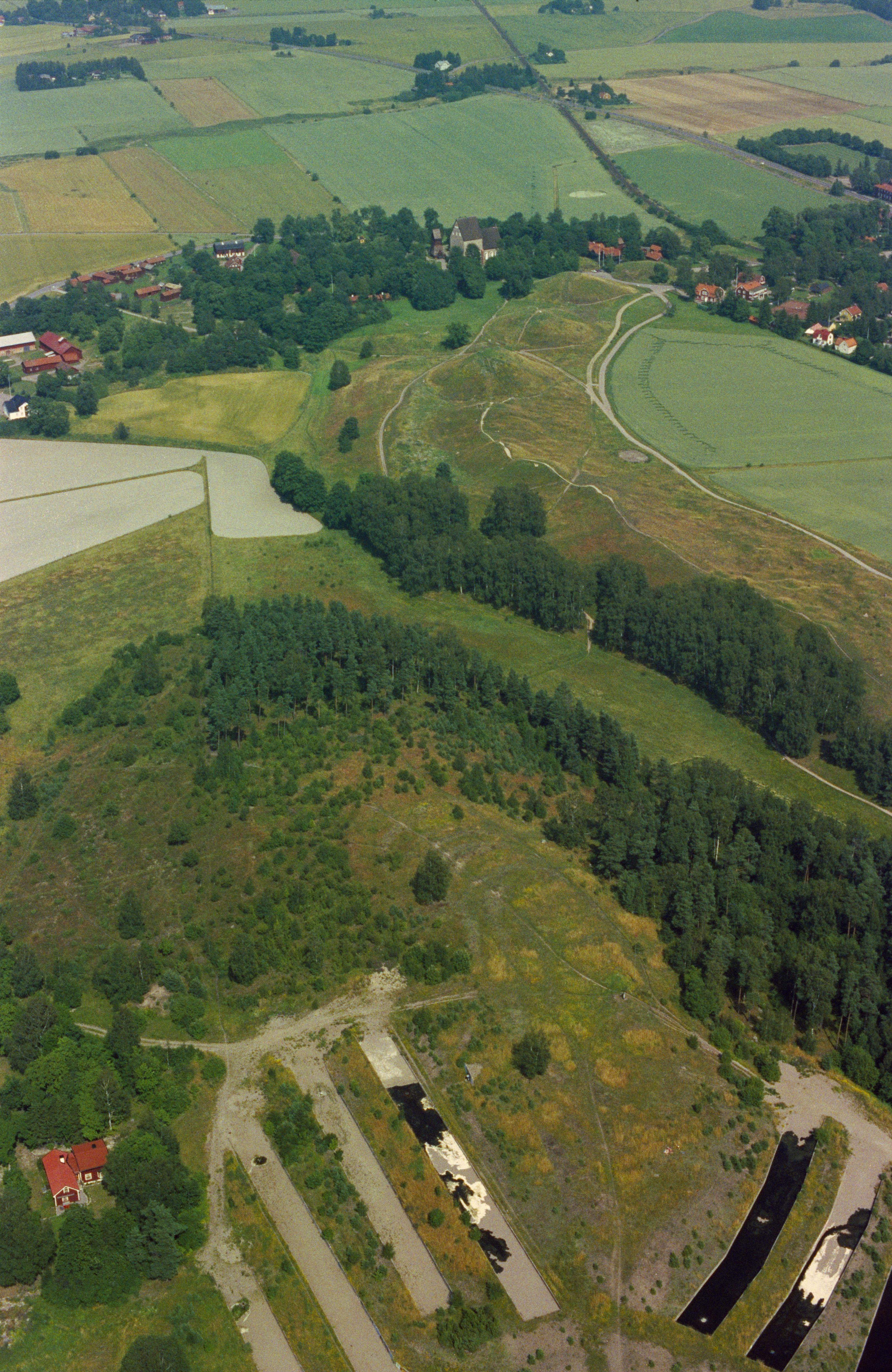 Beskrivning: Fyrisåns dalgång. Över bildens mitt Gamla Uppsala kyrka RAÄnr Uppsala 774, Kungshögarna gravfält Uppsala 123:1, boplats Uppsala 263:1 m.fl. Bilden är tagen mot (väderstreck): NO