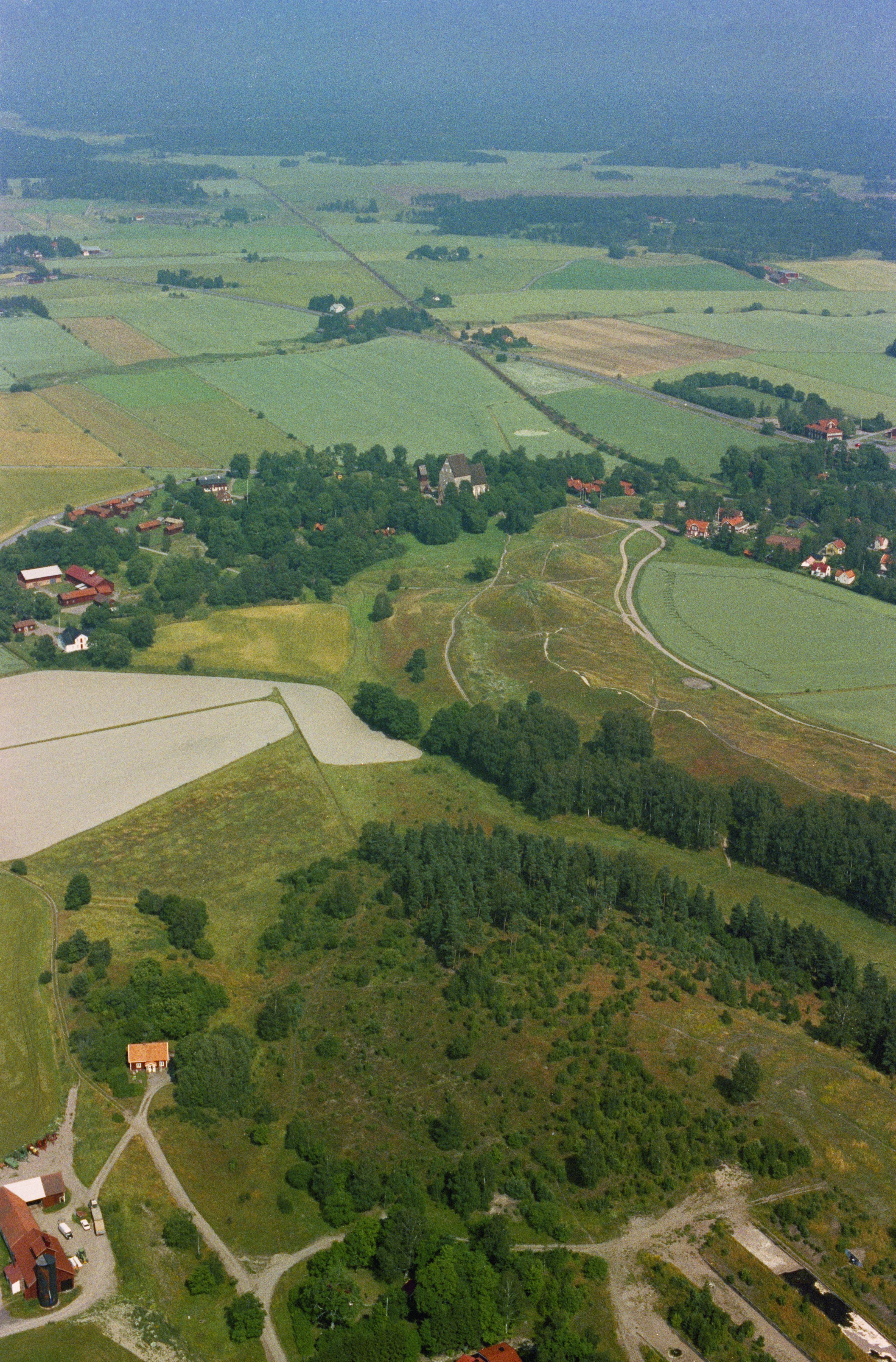 Beskrivning: Fyrisåns dalgång. Över bildens mitt Gamla Uppsala kyrka RAÄnr Uppsala 774, Kungshögarna gravfält Uppsala 123:1, boplats Uppsala 263:1 m.fl. Bilden är tagen mot (väderstreck): NO
