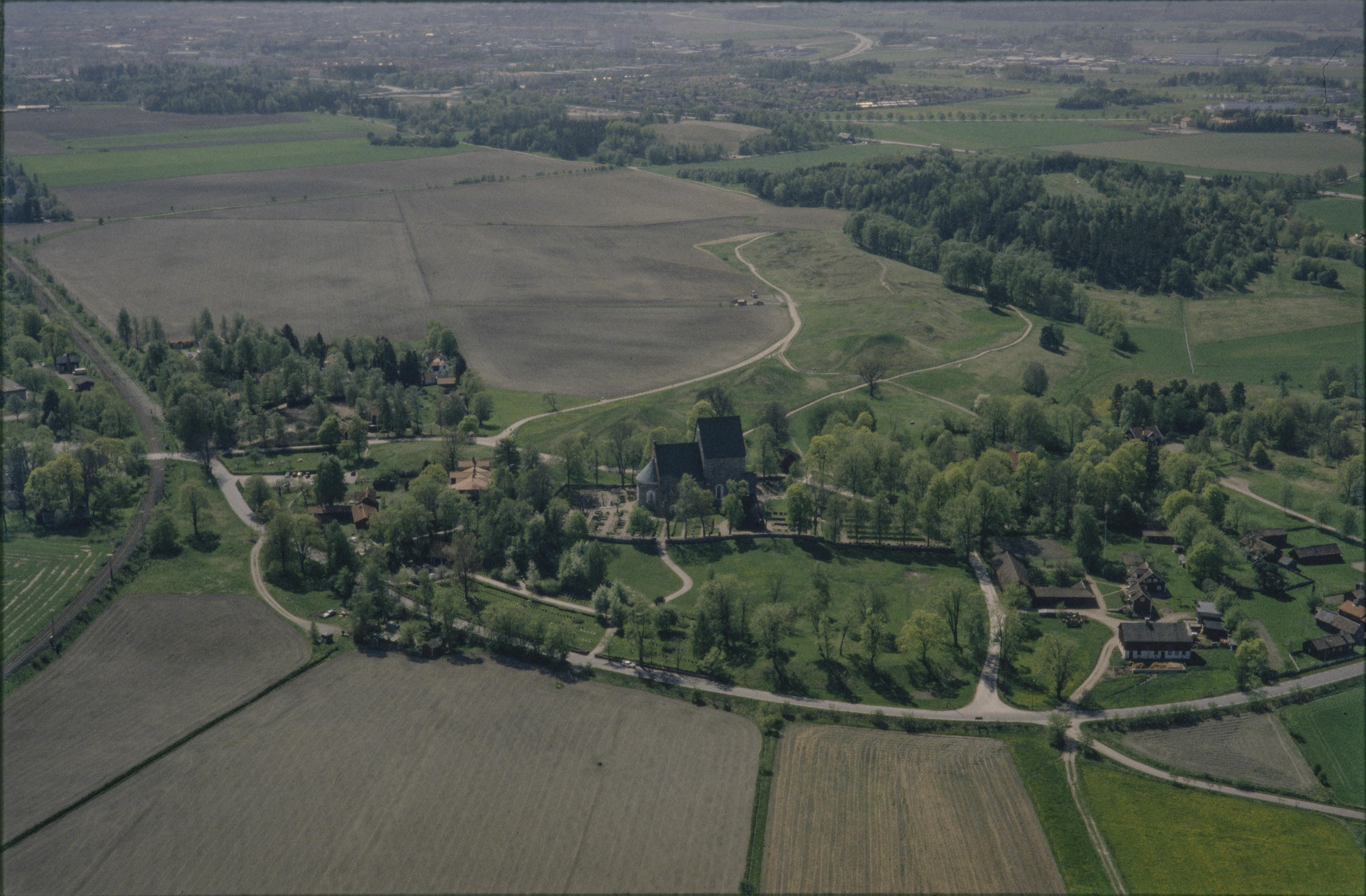 Beskrivning: Fyrisåns dalgång. Gamla Uppsala kyrka RAÄnr Uppsala 774, Kungshögarna gravfält Uppsala 123:1, boplats Uppsala 263:1 m.fl. Bilden är tagen mot (väderstreck): SSV
