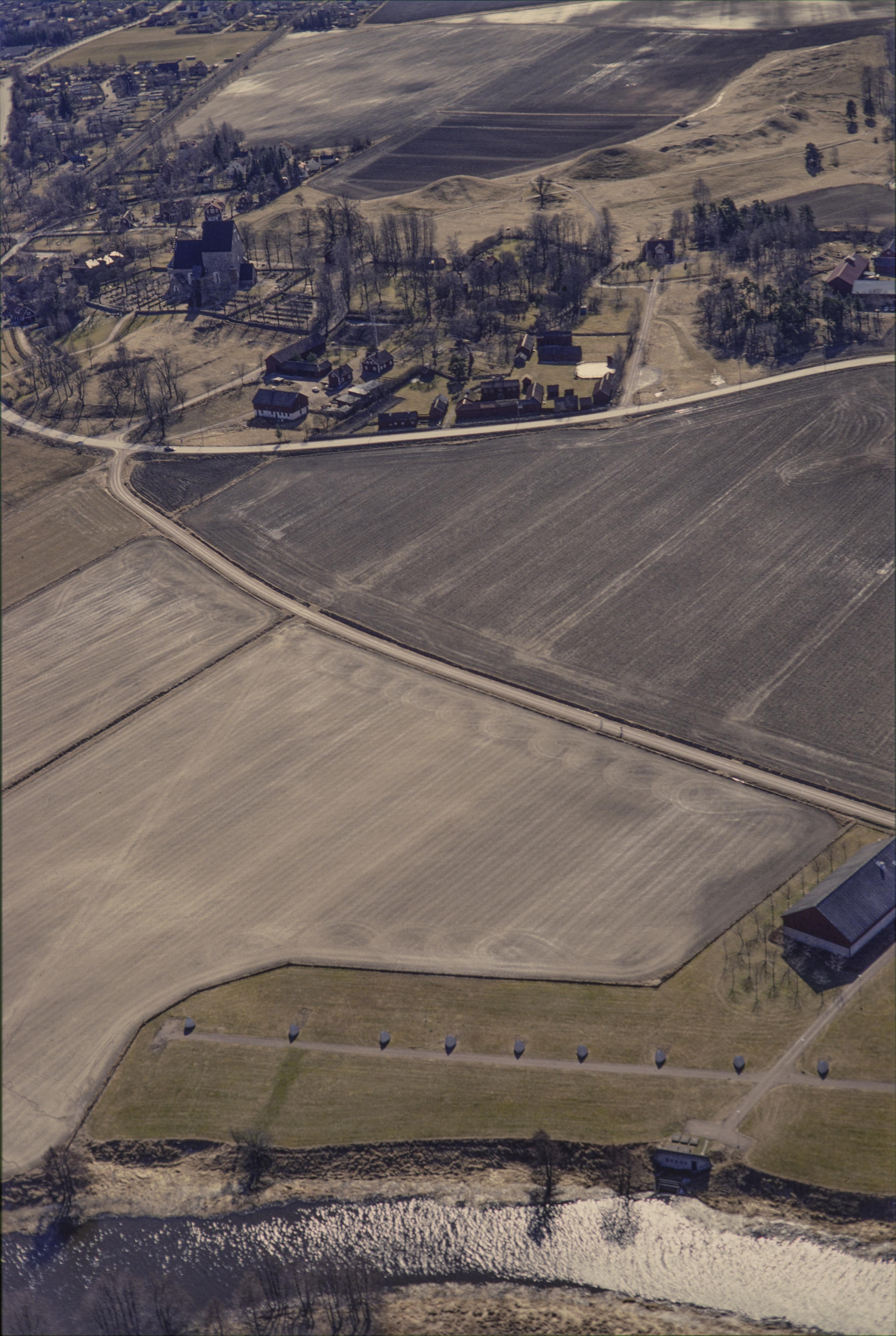 Beskrivning: Anmärkning (övrig): Riksintresse-nr/namn: C30 - Gamla Uppsala samt Fyrisåns och Björklingeåns dalgångar. Socken: Björklinge, Bälinge, Gamla Uppsala, Lena, Tensta och Ärentuna. Motivering: Centralbygd av stor betydelse för rikets historia med kontinuitet sedan bronsåldern och med monumentalt och traditionsbärande rikspolitiskt centrum under forn- och medeltid med kultplats, kungsgård och Sveriges första ärkebiskopssäte. (Fornlämningsmiljö, Kyrkomiljö, Slottsmiljö). - Uttryck för riksintresset: Landets tätaste och mest omfattande bestånd av skärvstenshögar och boplatslämningar från bronsåldern belägna i ådalgångarna. Gamla Uppsala med kungshögar och gravfält från järnåldern, lämningar av kungsgård och tidigmedel(…) Texten i detta fält har förkortats vid migrering till e-arkivet. Se filbilagan extra.xml för fullständig information under note_archivist. Beskrivning: Fyrisåns dalgång. I bildens övre del Gamla Uppsala kyrka RAÄnr Uppsala 774, Kungshögarna gravfält Uppsala 123:1, boplats Uppsala 263:1 m.fl. Bilden är tagen mot (väderstreck): SSO Fotosyfte: Flygbildsdokumentation