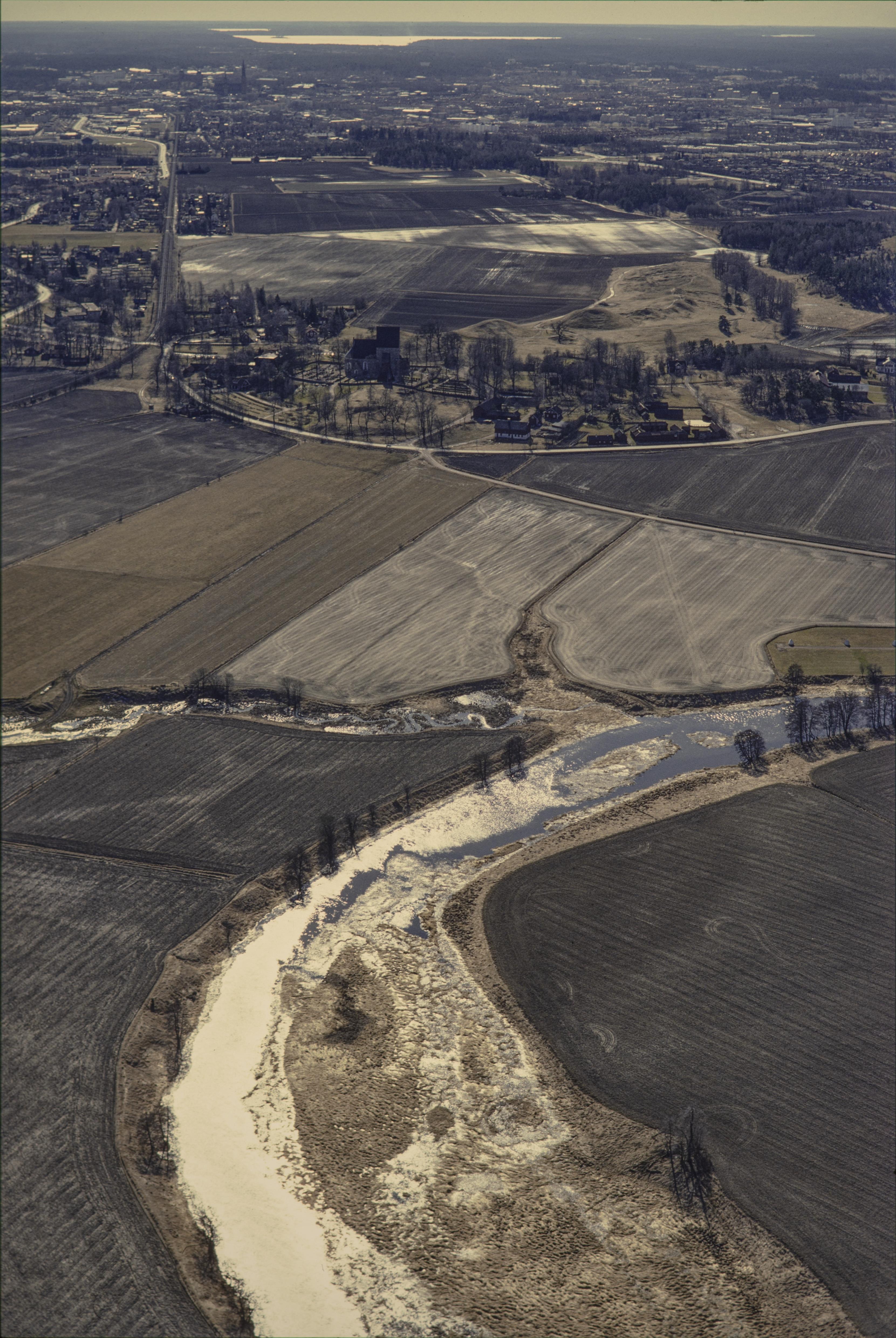 Beskrivning: Anmärkning (övrig): Riksintresse-nr/namn: C30 - Gamla Uppsala samt Fyrisåns och Björklingeåns dalgångar. Socken: Björklinge, Bälinge, Gamla Uppsala, Lena, Tensta och Ärentuna. Motivering: Centralbygd av stor betydelse för rikets historia med kontinuitet sedan bronsåldern och med monumentalt och traditionsbärande rikspolitiskt centrum under forn- och medeltid med kultplats, kungsgård och Sveriges första ärkebiskopssäte. (Fornlämningsmiljö, Kyrkomiljö, Slottsmiljö). - Uttryck för riksintresset: Landets tätaste och mest omfattande bestånd av skärvstenshögar och boplatslämningar från bronsåldern belägna i ådalgångarna. Gamla Uppsala med kungshögar och gravfält från järnåldern, lämningar av kungsgård och tidigmedel(…) Texten i detta fält har förkortats vid migrering till e-arkivet. Se filbilagan extra.xml för fullständig information under note_archivist. Beskrivning: Fyrisåns dalgång. I bildens övre del Gamla Uppsala kyrka RAÄnr Uppsala 774, Kungshögarna gravfält Uppsala 123:1, boplats Uppsala 263:1 m.fl. Bilden är tagen mot (väderstreck): S Fotosyfte: Flygbildsdokumentation