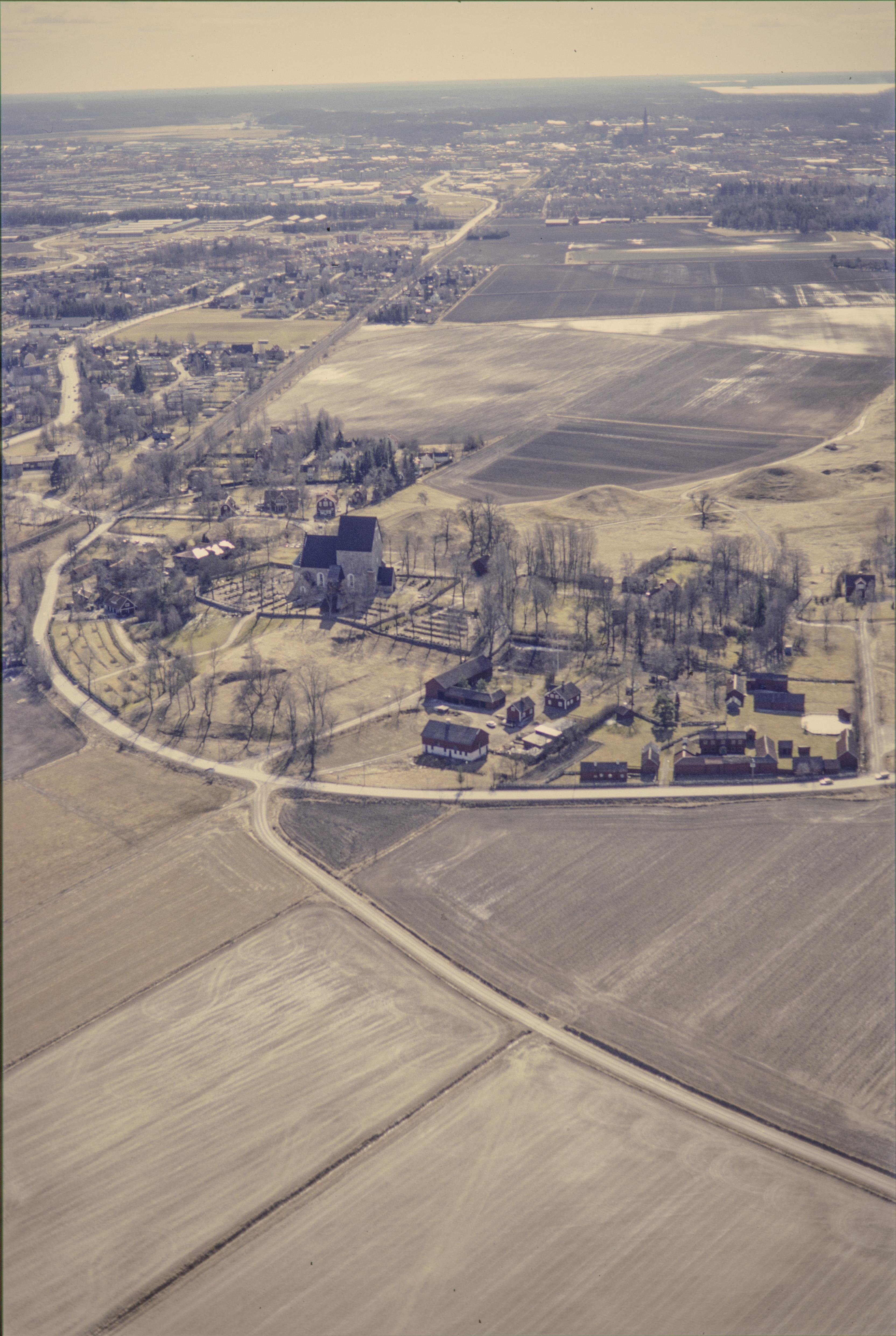 Beskrivning: Fyrisåns dalgång. Vid bildens mitt Gamla Uppsala kyrka RAÄnr Uppsala 774, Kungshögarna gravfält Uppsala 123:1, boplats Uppsala 263:1 m.fl. Bilden är tagen mot (väderstreck): SSO