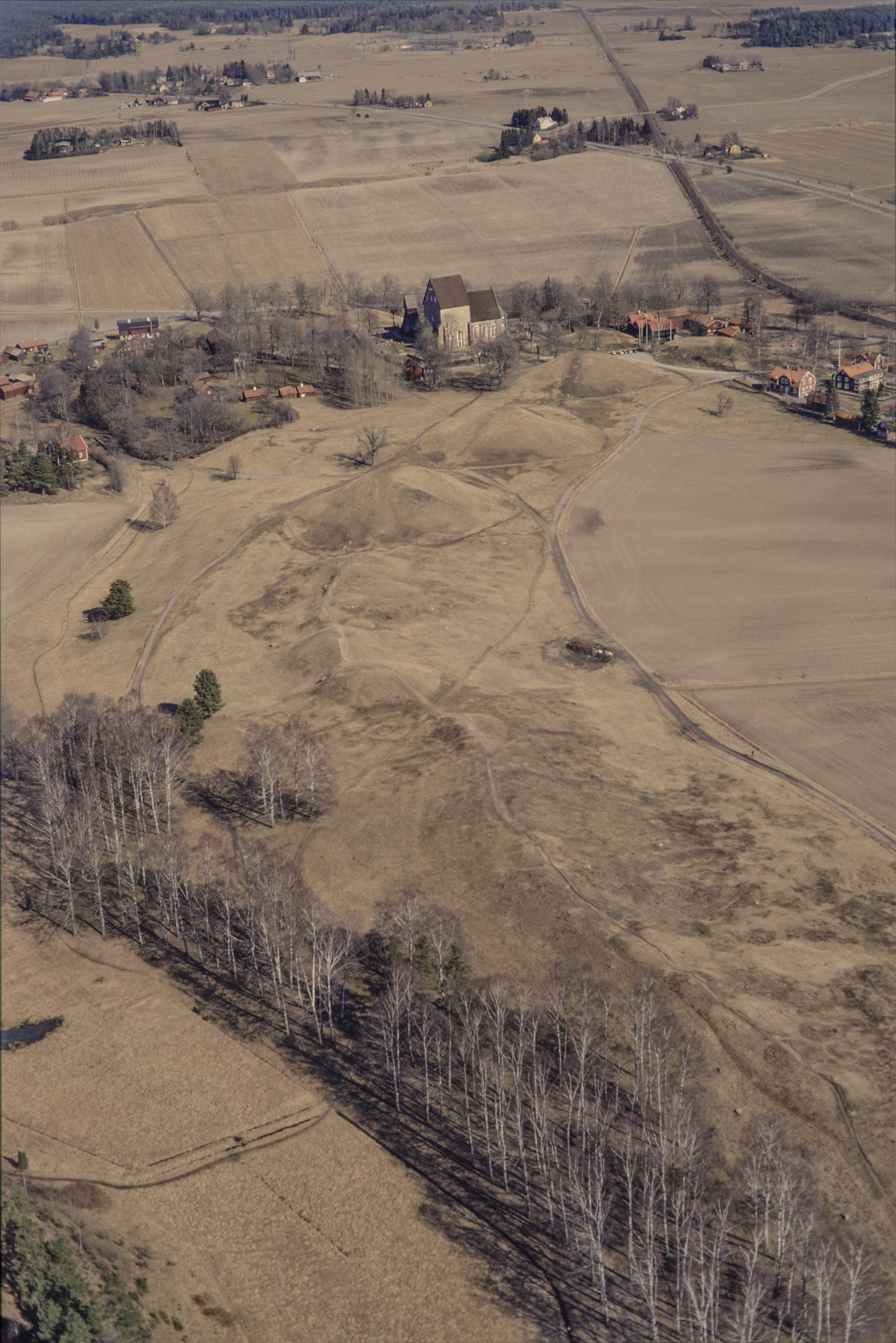 Beskrivning: Fyrisåns dalgång. Gamla Uppsala kyrka RAÄnr Uppsala 774, Kungshögarna gravfält Uppsala 123:1, boplats Uppsala 263:1 m.fl. Bilden är tagen mot (väderstreck): NO