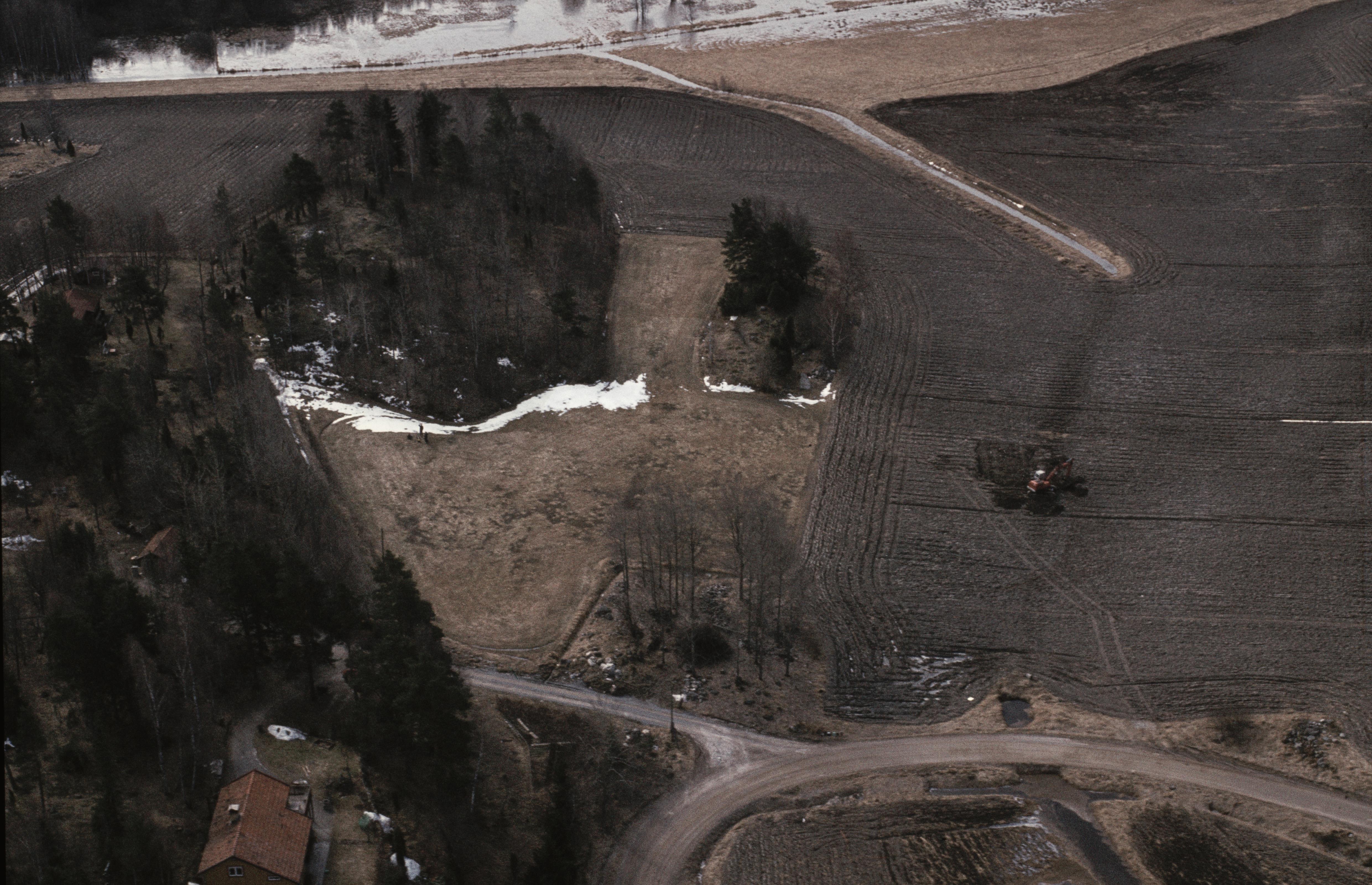 Beskrivning: Sydvästra delen av Angarnssjöängen, Långhundraleden. Färdväg och runstenar RAÄnr Vallentuna 257:1 m.fl. och gravfält RAÄnr Vallentuna 255:1 vid Lingsbergs by. Bilden är tagen mot (väderstreck): S