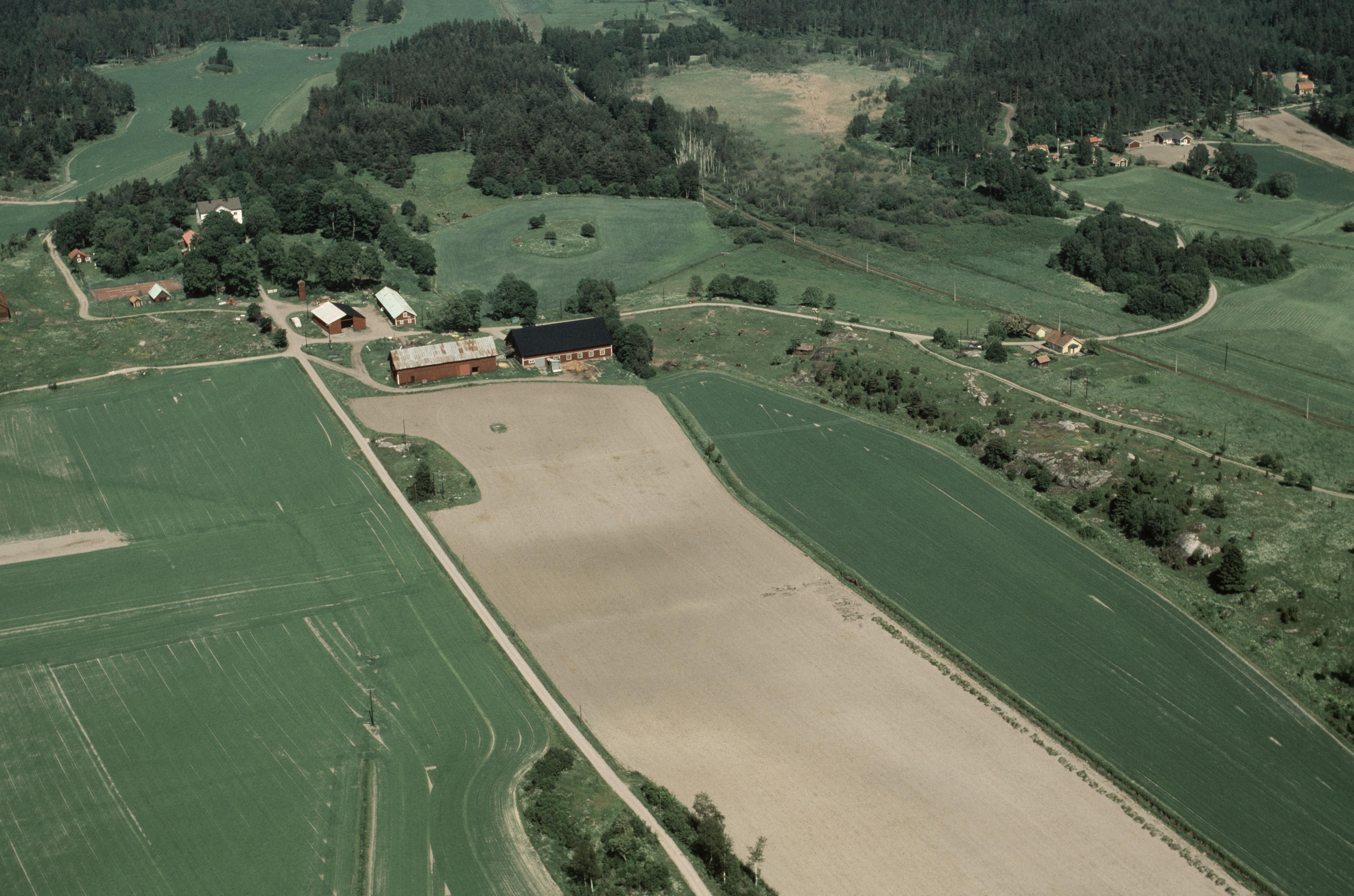 Beskrivning: Molnby by. I bildens högra del gravfält RAÄnr Vallentuna 205:1. Bilden är tagen mot (väderstreck): NO