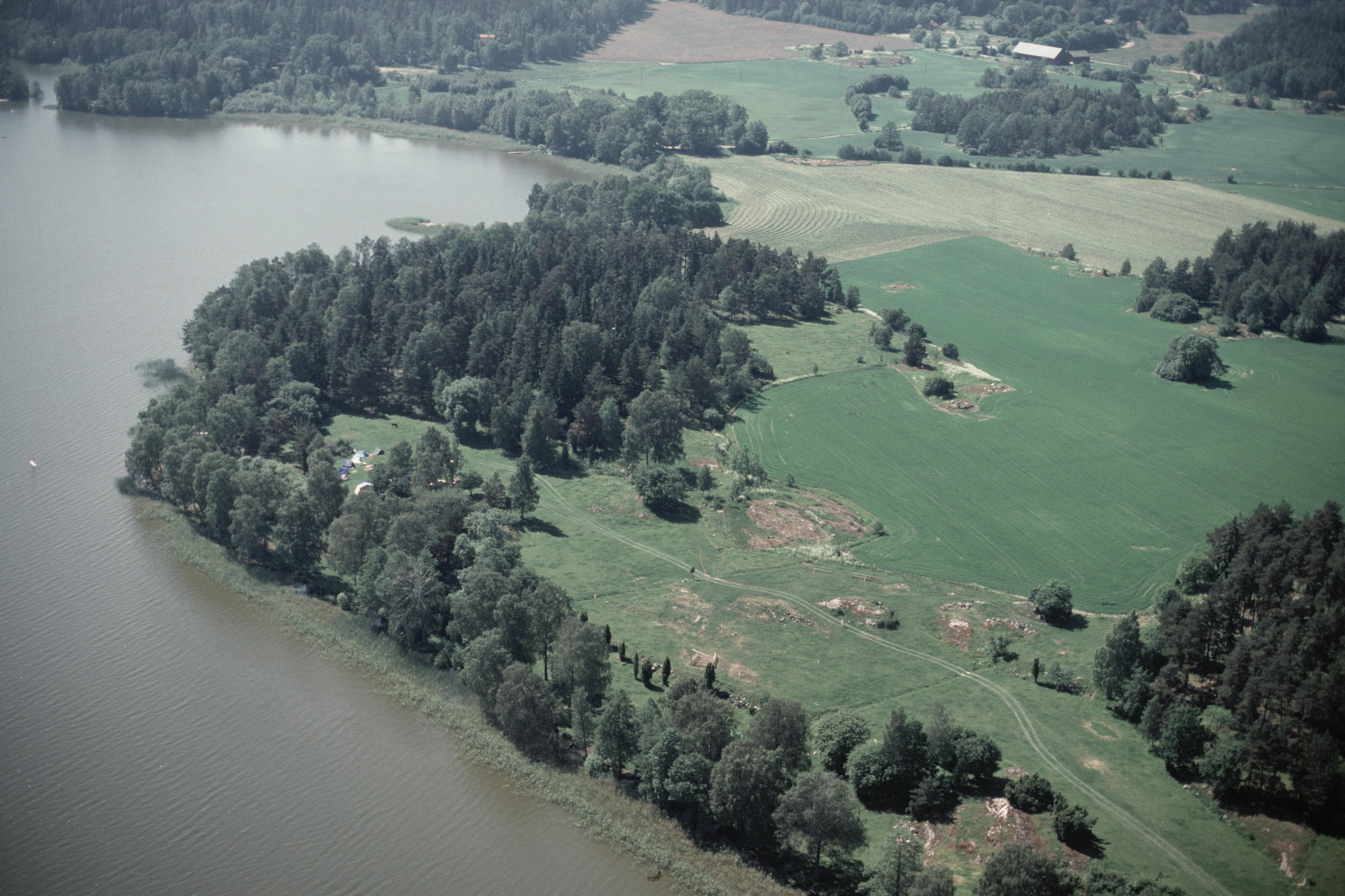 Beskrivning: Området Kragsta med gravfält RAÄnr Vallentuna 52:1 och 53:1 vid Bällstasundet i Vallentunasjön. Uthamra by i bildens övre del. Bilden är tagen mot (väderstreck): V