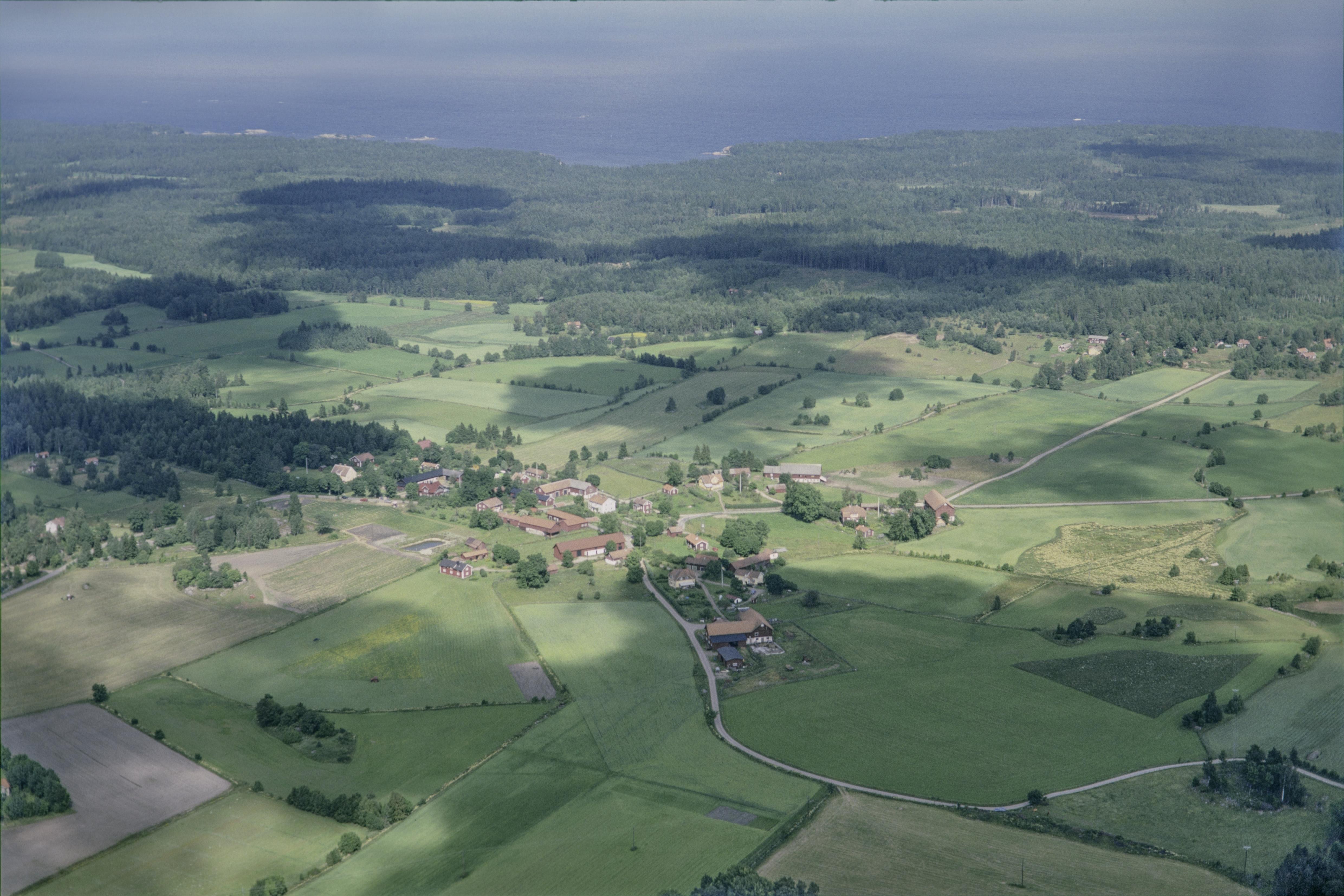 Beskrivning: Anmärkning (övrig): Riksintresse-nr/namn: AB94 - Väddö kanal. Socken: Väddö. Motivering: Kommunikationsmiljö där en forntida farled i ett skärgårdslandskap utvecklats genom en grävd kanal på 1200-1300-talen och den nuvarande kanalen från 1819-1832, samt odlingsbygden utmed vattenleden. (Forntida farledsmiljö, Kanalmiljö). - Uttryck för riksintresset: Spår av den medeltida kanalen vid tröskeln mellan Kistahavet och Storfjärden. 1800-talets kanal med kajer, kanalvaktarbostäder och andra anläggningar. Det småbrutna odlingslandskapet på vattenledens östra sida med äldre vägsträckningar och byar, bl.a. Norrsund med Storängens hävdade löväng, Södersund och den stora och tätt bebyggda Senneby. - I området ingår även:(…) Texten i detta fält har förkortats vid migrering till e-arkivet. Se filbilagan extra.xml för fullständig information under note_archivist. Beskrivning: Byn Senneby öster om Väddö kanal. Över bildens mitt område med gravfält RAÄnr Väddö 40:1 och stensättningar Väddö 49:1-2. Bilden är tagen mot (väderstreck): NO Fotosyfte: Flygbildsdokumentation