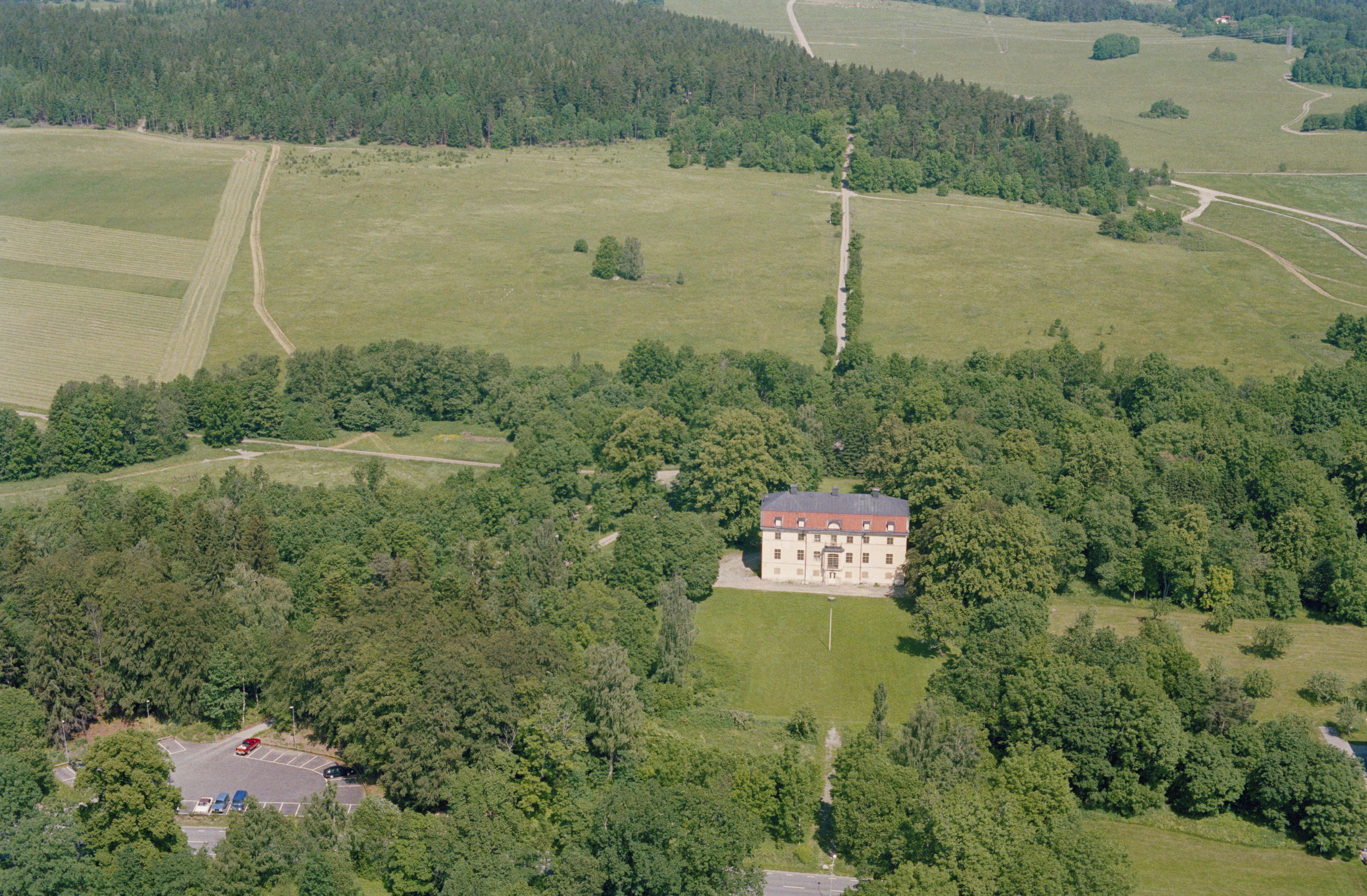 Beskrivning: Granhammars slott. Till vänster gravhögaar RAÄnr Västra Ryd 25:1-3, 26:1-2 m.fl. Bilden är tagen mot (väderstreck): NNO