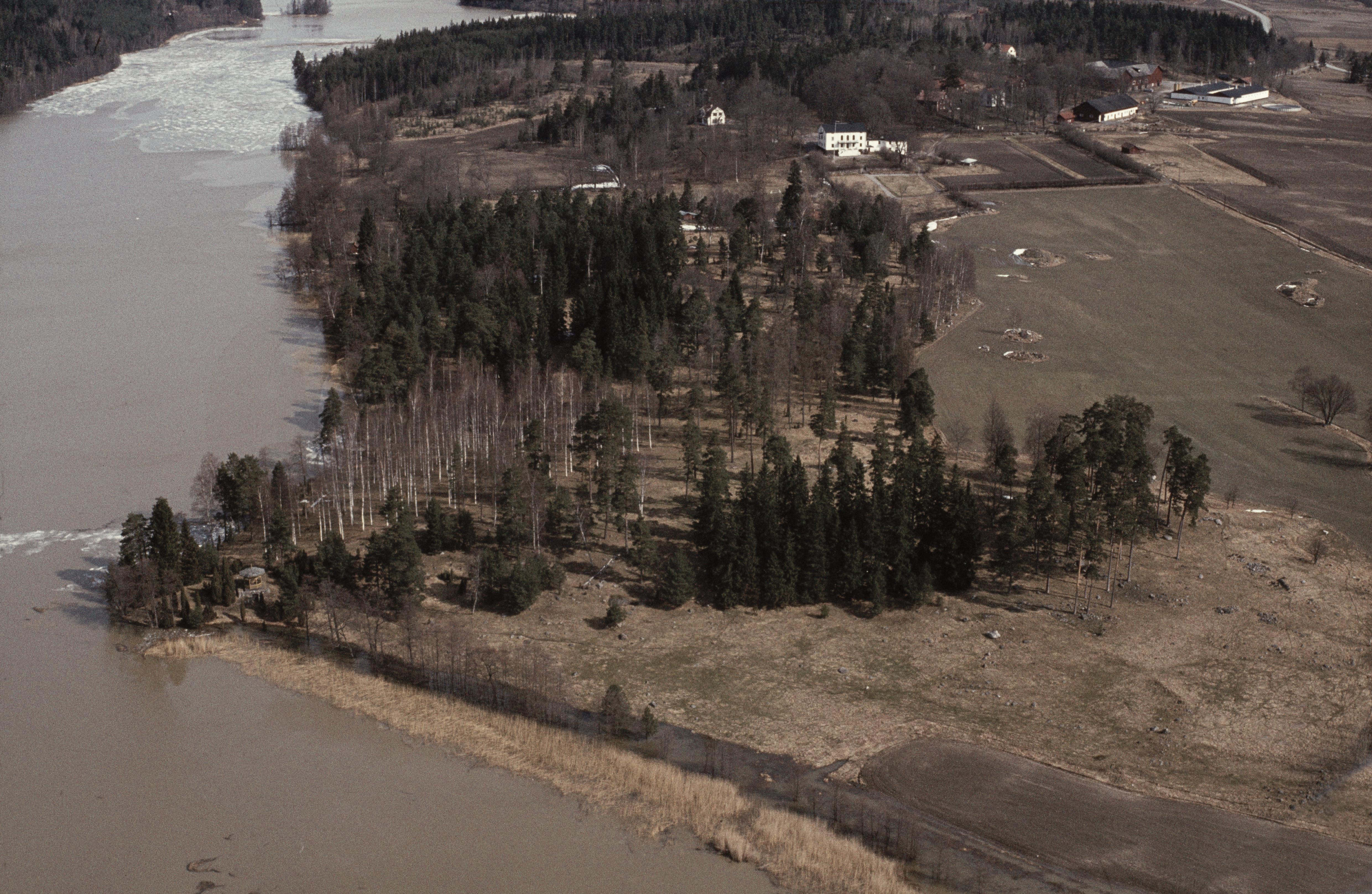 Beskrivning: I bildens övre del Hakunge herrgård. Vid bildens mitt grav- och boplats Kung Haks hög Össeby-Garn 55:1 vid sjön Garnsviken. Bilden är tagen mot (väderstreck): N