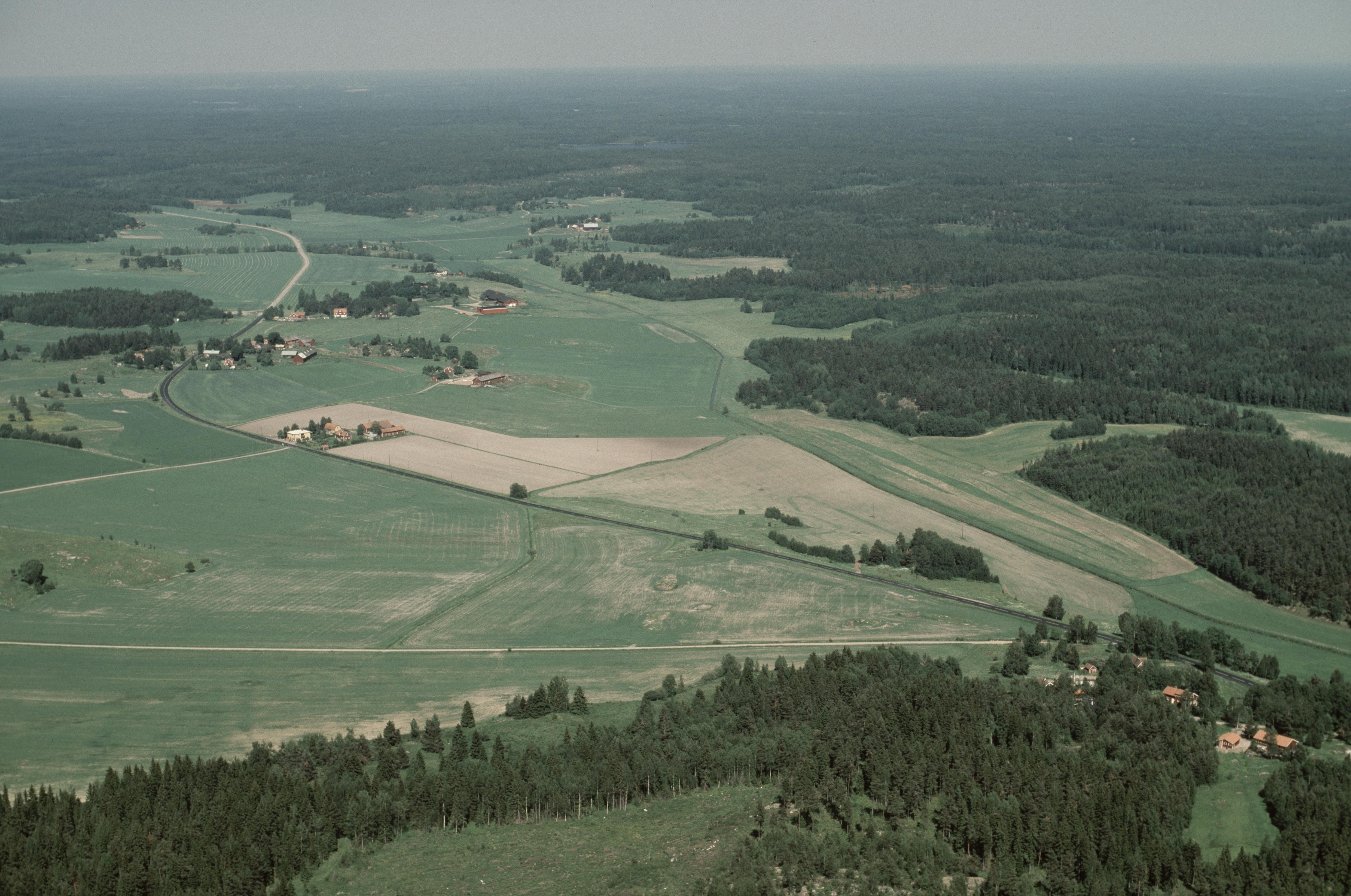 Beskrivning: Området Nyborg mellan Morsta och Brollsta. I bildens nedre kant hög RAÄnr Össeby-Garn 126:1. Vid bildens mitt gravfält RAÄnr Össeby-Garn 146:1 vid Kumla och Stångberga. Bilden är tagen mot (väderstreck): NO