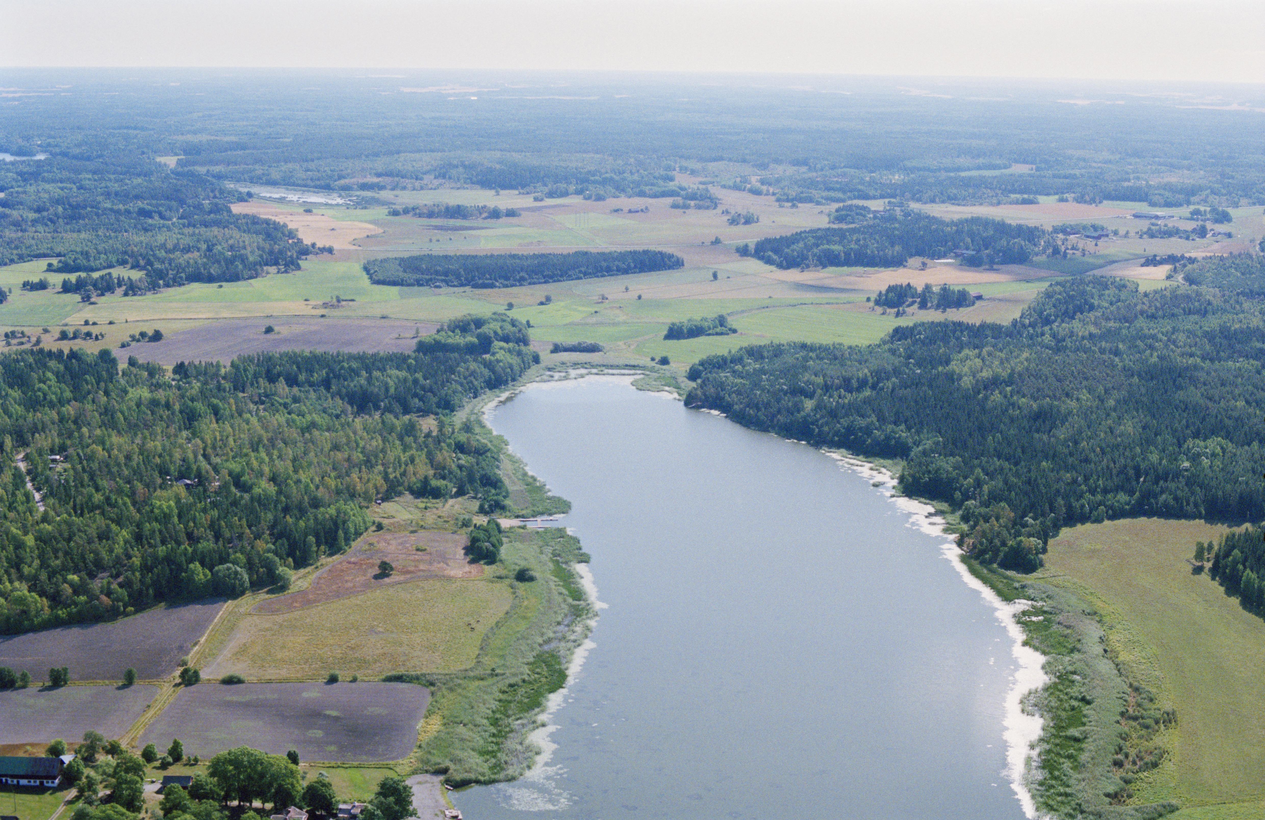 Beskrivning: Östra änden av Ryssjön mot Norra Åloppe i Nysätra socken. Området Alvassen över bildens mitt. I bildens mitt och övre del boplats RAÄnr Österunda 46:1 och 47:1. Bilden är tagen mot (väderstreck): OSO