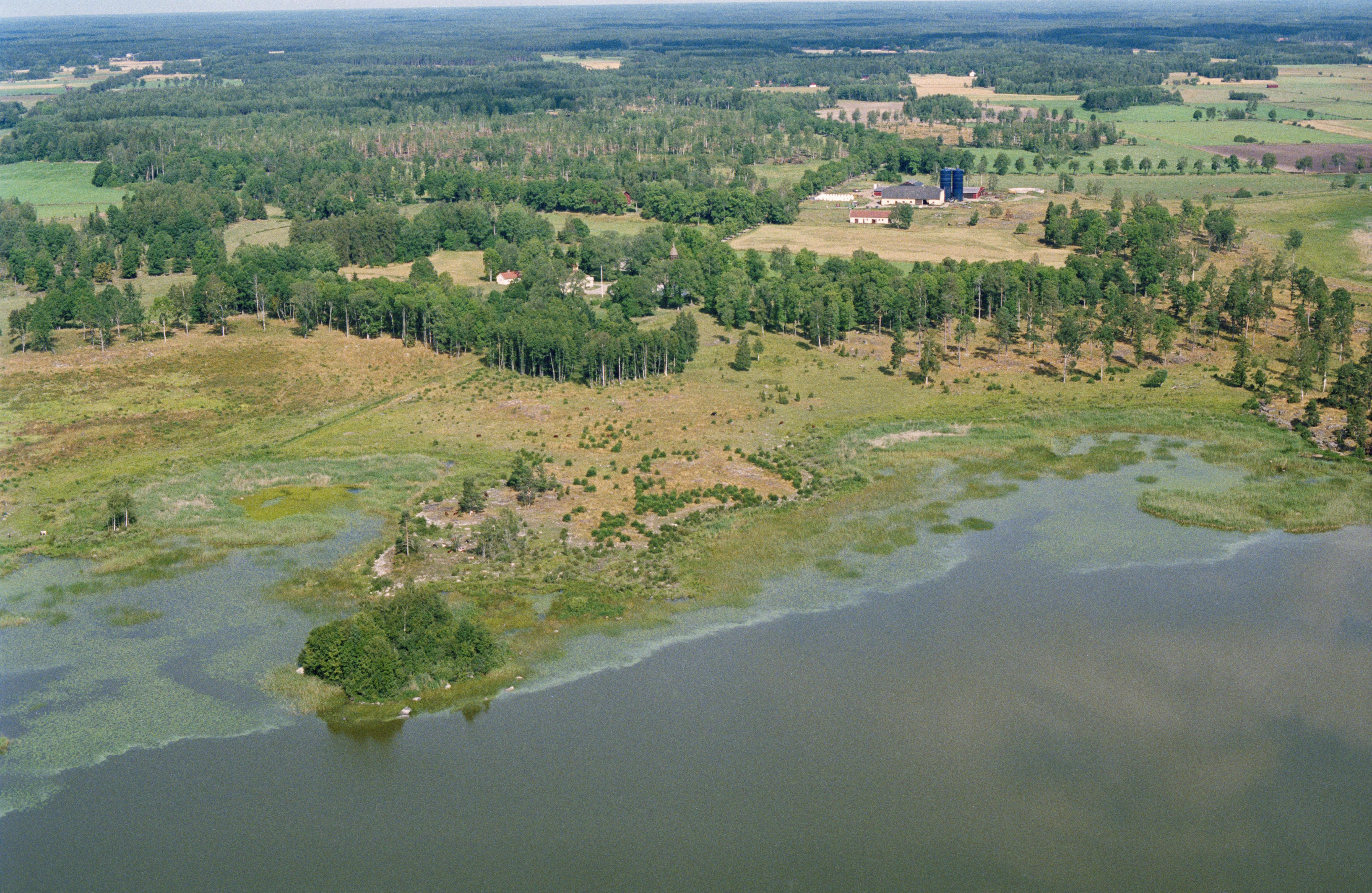 Beskrivning: Vid bildens mitt lämningar efter borg / vallgrav RAÄnr Östervåla 359 och bytomt Östervåla 362 vid Aspnäs herrgård norr om sjön Tämnaren. Aspnäs gårdskyrka vid bildens mitt, Bilden är tagen mot (väderstreck): N