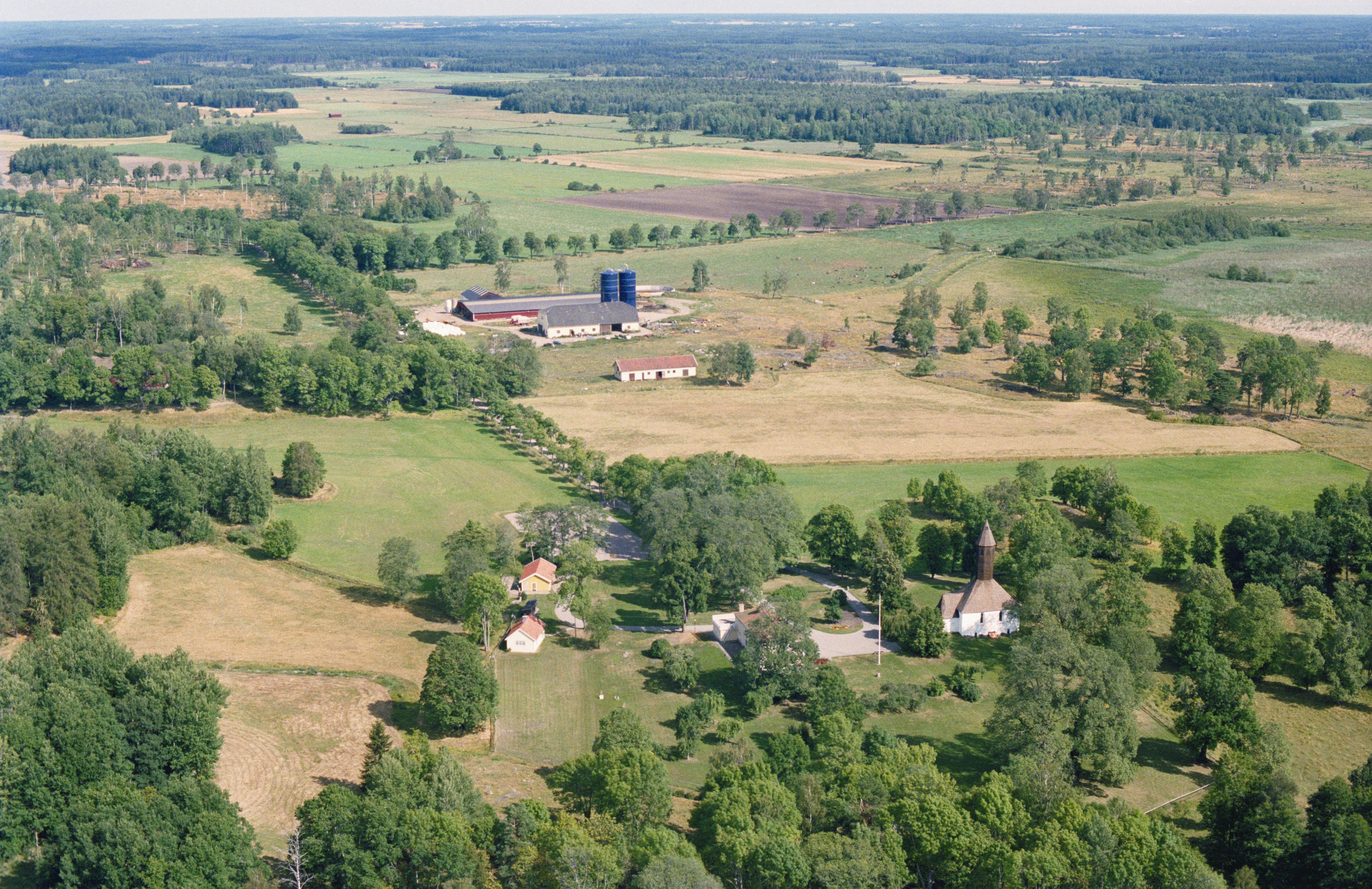 Beskrivning: I bildens nedre del lämningar efter borg / vallgrav RAÄnr Östervåla 359 och bytomt Östervåla 362 vid Aspnäs herrgård norr om sjön Tämnaren. Aspnäs gårdskyrka till höger, Bilden är tagen mot (väderstreck): ONO