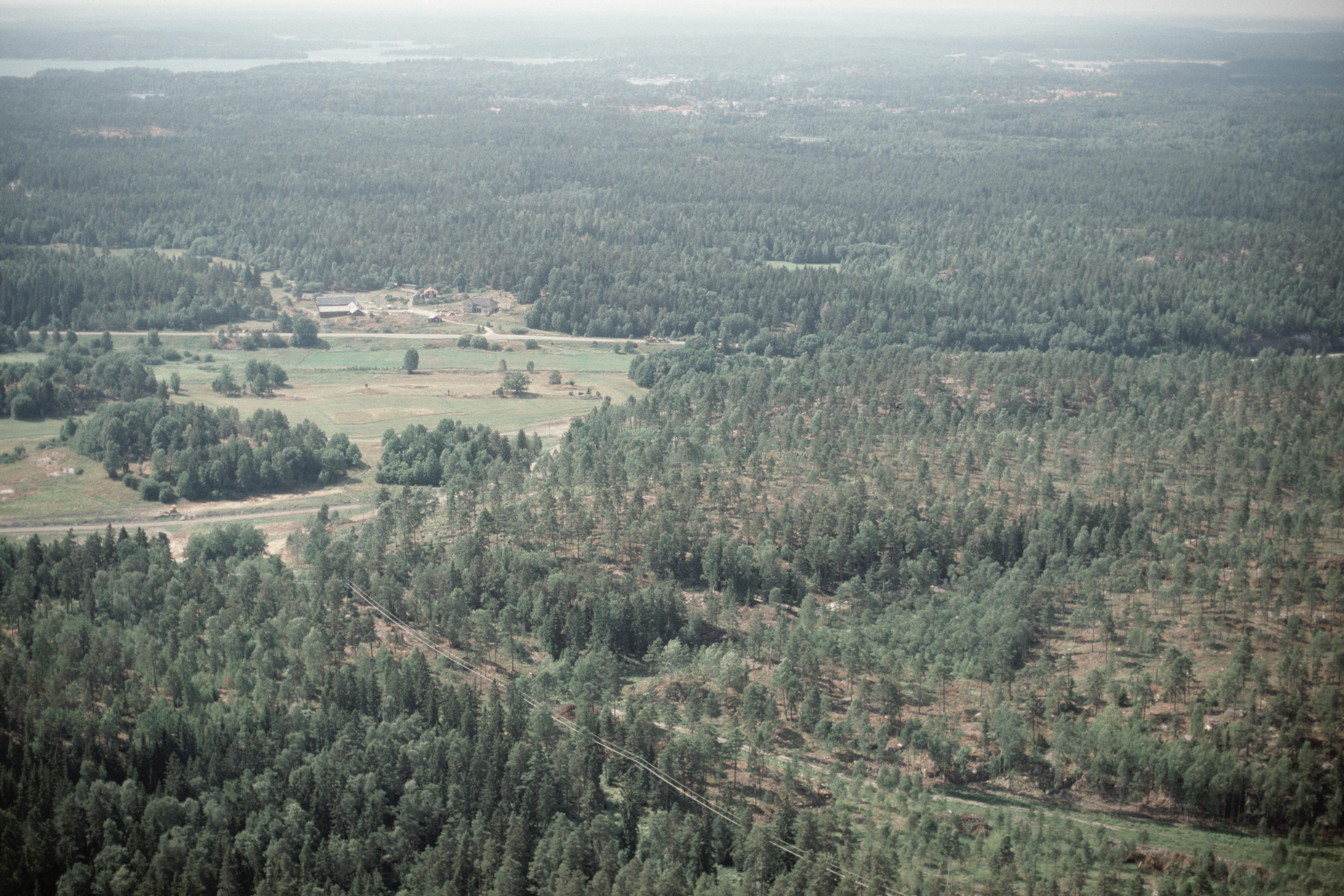 Beskrivning: Översättra by i västra delen av området Skärgårdsstad. I bildens nedre del gravfält RAÄnr Österåker 476:1, 477:1, 479:1. Vid bildens mitt boplats RAÄnr Österåker 478:1-2 och 481:1 i Stockängen. Till höger om bildens mitt gården Bränntorp. Bilden är tagen mot (väderstreck): SV