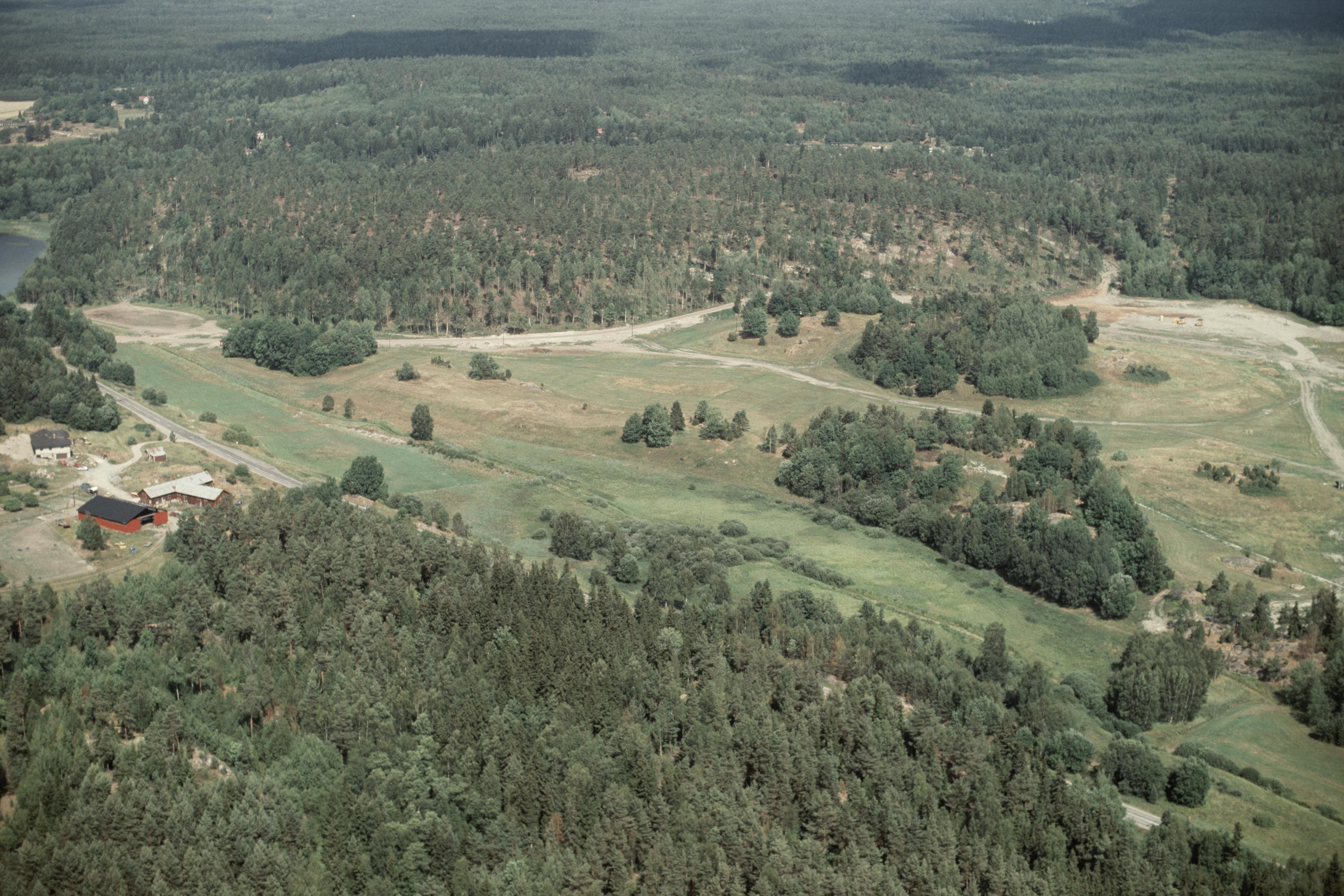 Beskrivning: Översättra by i västra delen av området Skärgårdsstad. Gården Bränntorp till vänster om bildens mitt. Vid bildens mitt bytomt / boplats RAÄnr Österåker 478:1-2 och 481:1 vid Stockängen. Solbergasjön uppe i bildens vänstra kant. Bilden är tagen mot (väderstreck): NNV