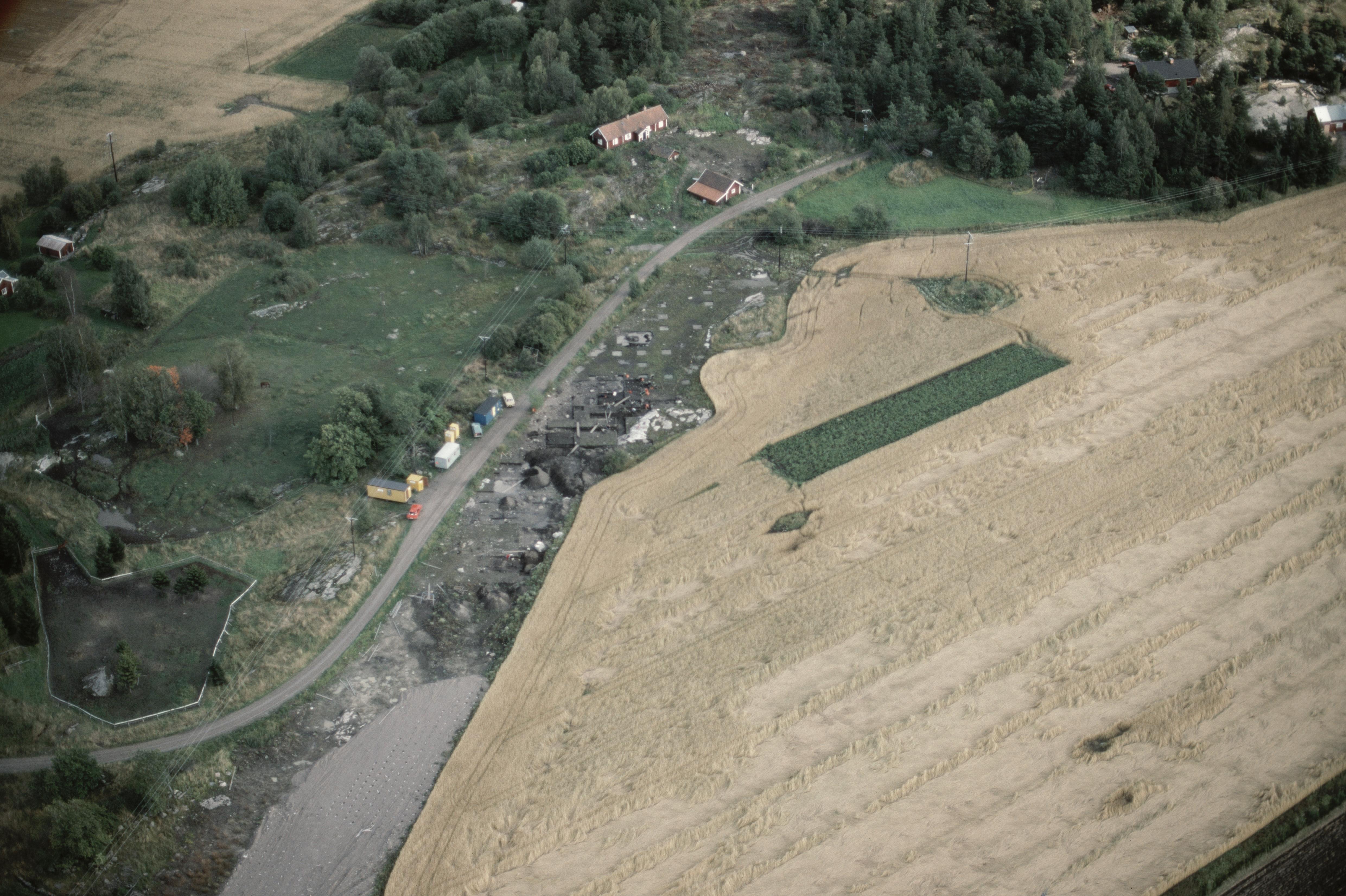 Beskrivning: Arkeologiska undersökningar innan bygge av väg E18 vid Apalle, Högsta och Pollista. Hällristningar RAÄnr Övergran 262:1 m.fl. och bytomt RAÄnr Övergran 260:1. Bilden är tagen mot (väderstreck): NO