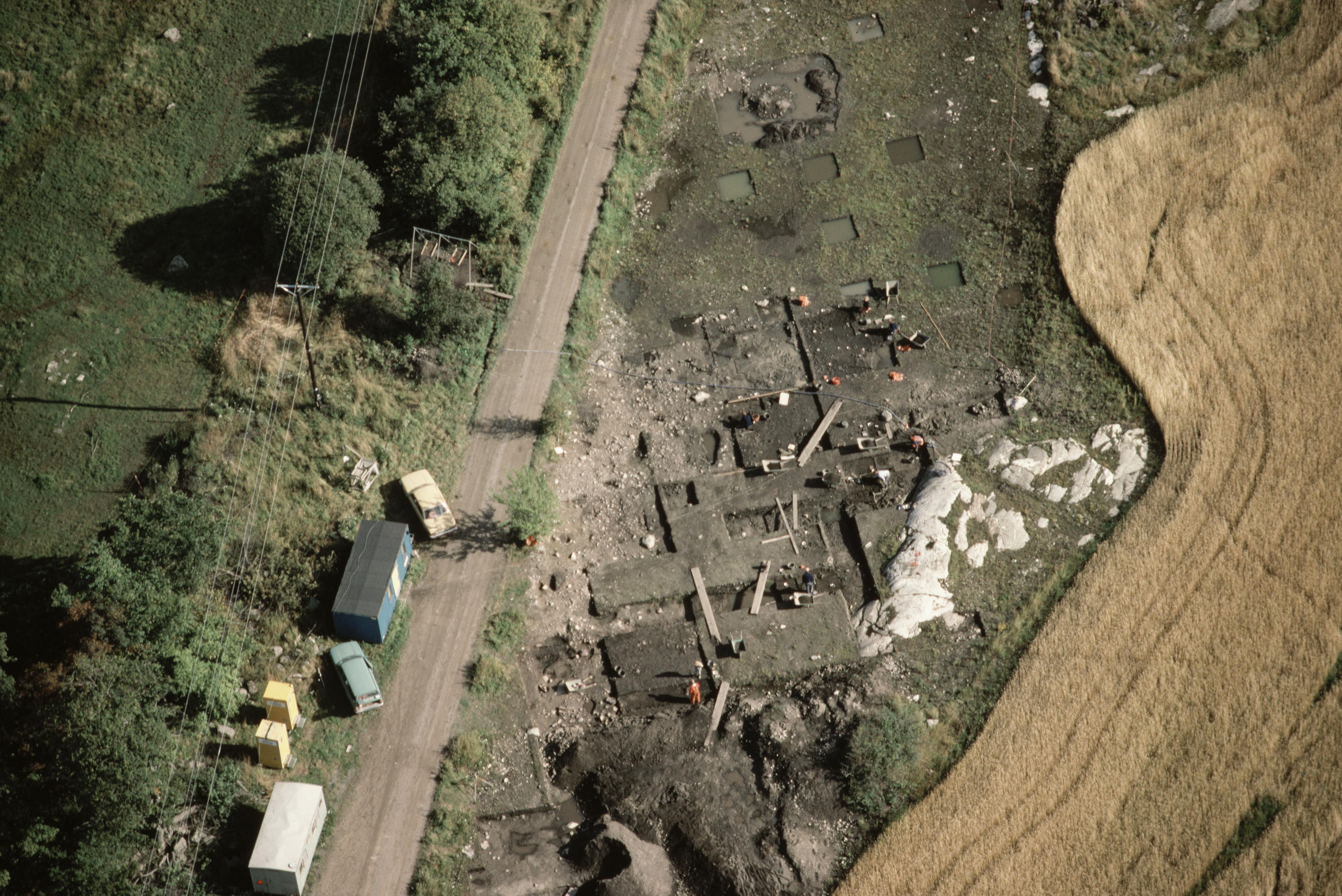 Beskrivning: Arkeologiska undersökningar innan bygge av väg E18 vid Apalle, Högsta och Pollista. Hällristningar RAÄnr Övergran 262:1 m.fl. och bytomt RAÄnr Övergran 260:1. Bilden är tagen mot (väderstreck): NO