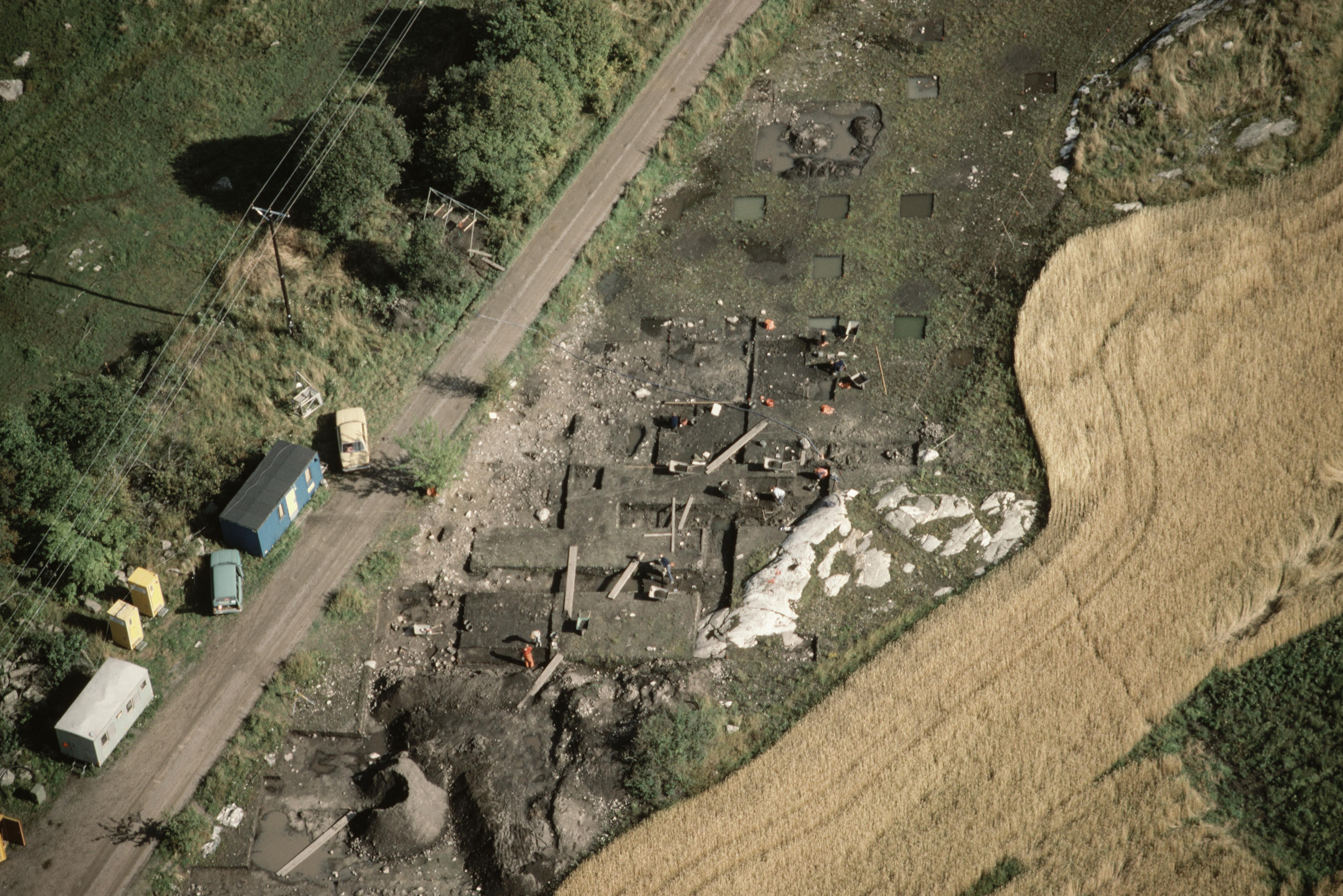 Beskrivning: Arkeologiska undersökningar innan bygge av väg E18 vid Apalle, Högsta och Pollista. Hällristningar RAÄnr Övergran 262:1 m.fl. och bytomt RAÄnr Övergran 260:1. Bilden är tagen mot (väderstreck): NO