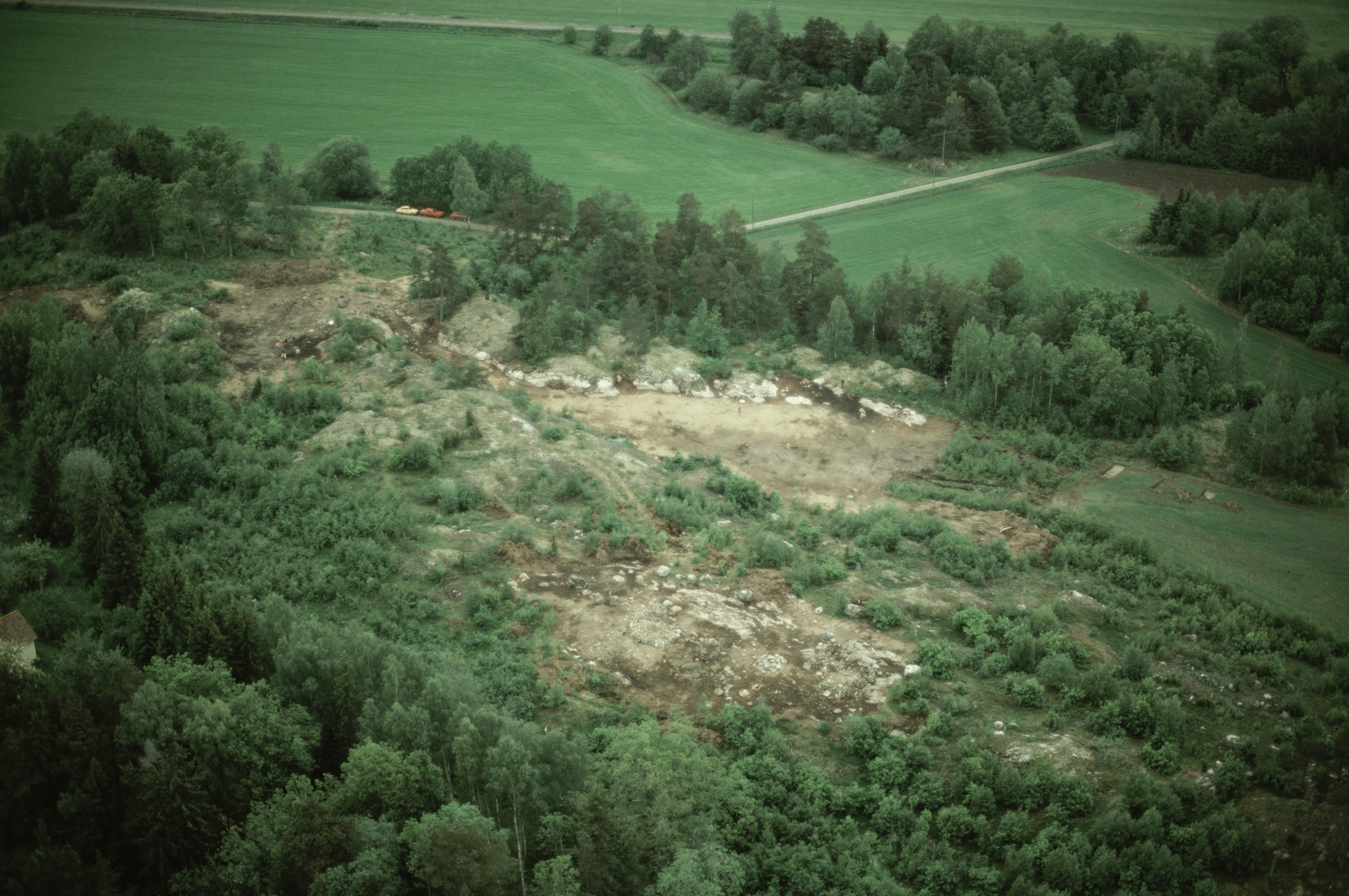 Beskrivning: Arkeologiska undersökningar innan bygge av väg E18 vid Apalle, Högsta och Pollista. I bilden Dragonbacken RAÄnr Övergran 9:1 och boplats RAÄnr Övergran 270:1 m.fl. Bilden är tagen mot (väderstreck): SO