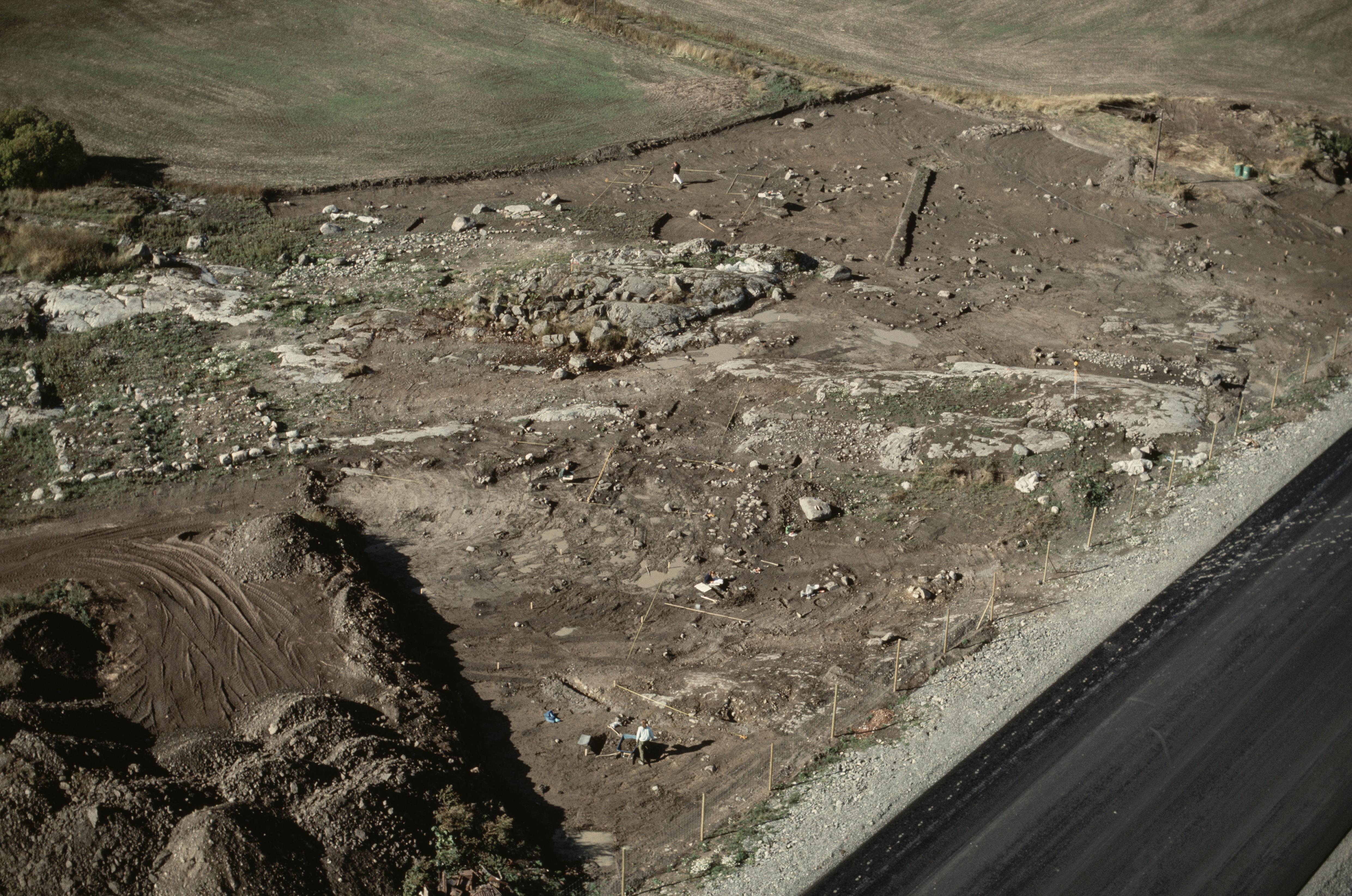 Beskrivning: Arkeologiska undersökningar innan bygge av väg E18 vid Apalle, Högsta och Pollista. Mot västra delen av Pollista gamla tomt RAÄnr Övergran 228:1. Bilden är tagen mot (väderstreck): SV