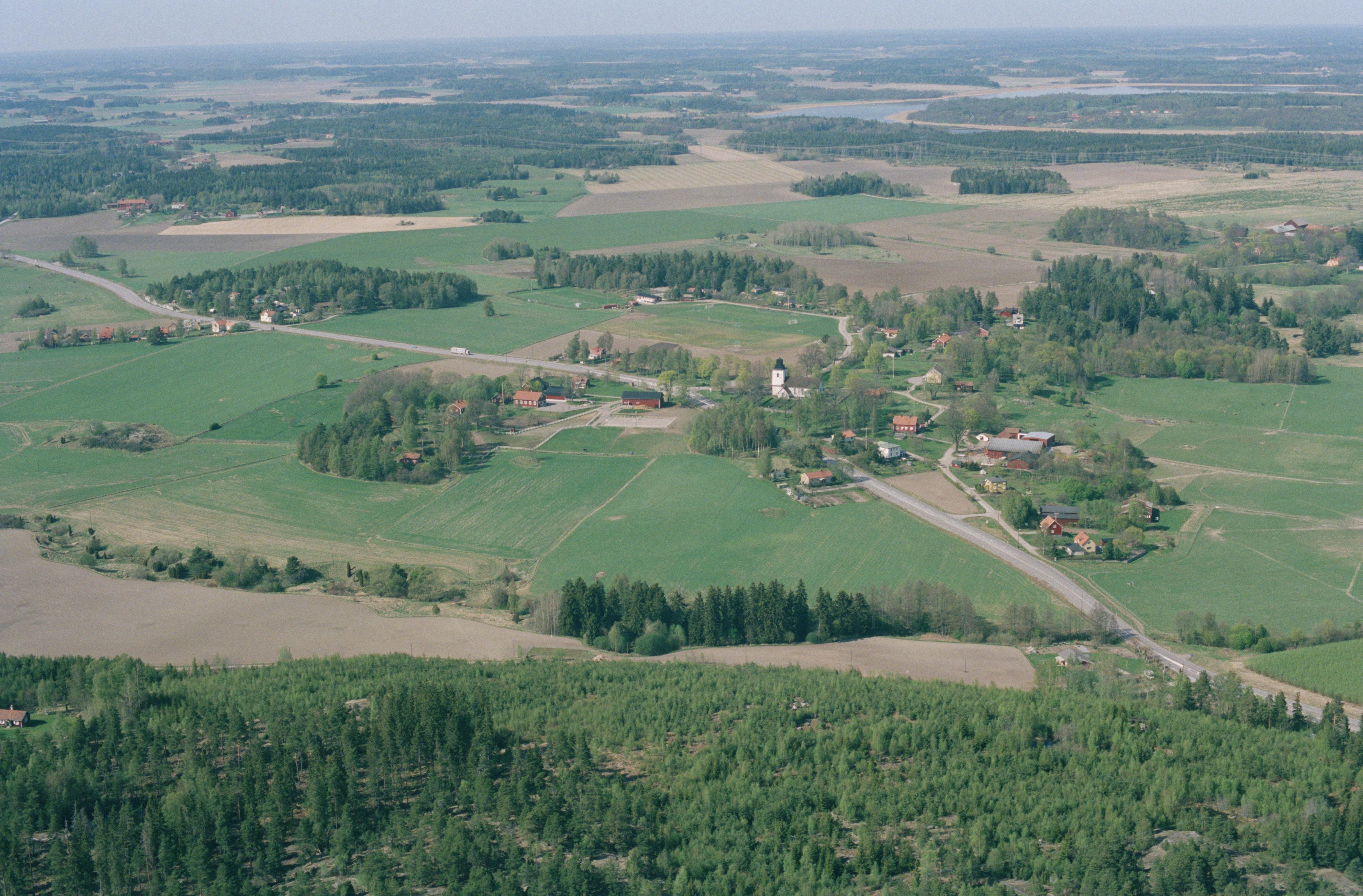 Beskrivning: Övergrans kyrka och kyrkby. Bilden är tagen mot (väderstreck): N