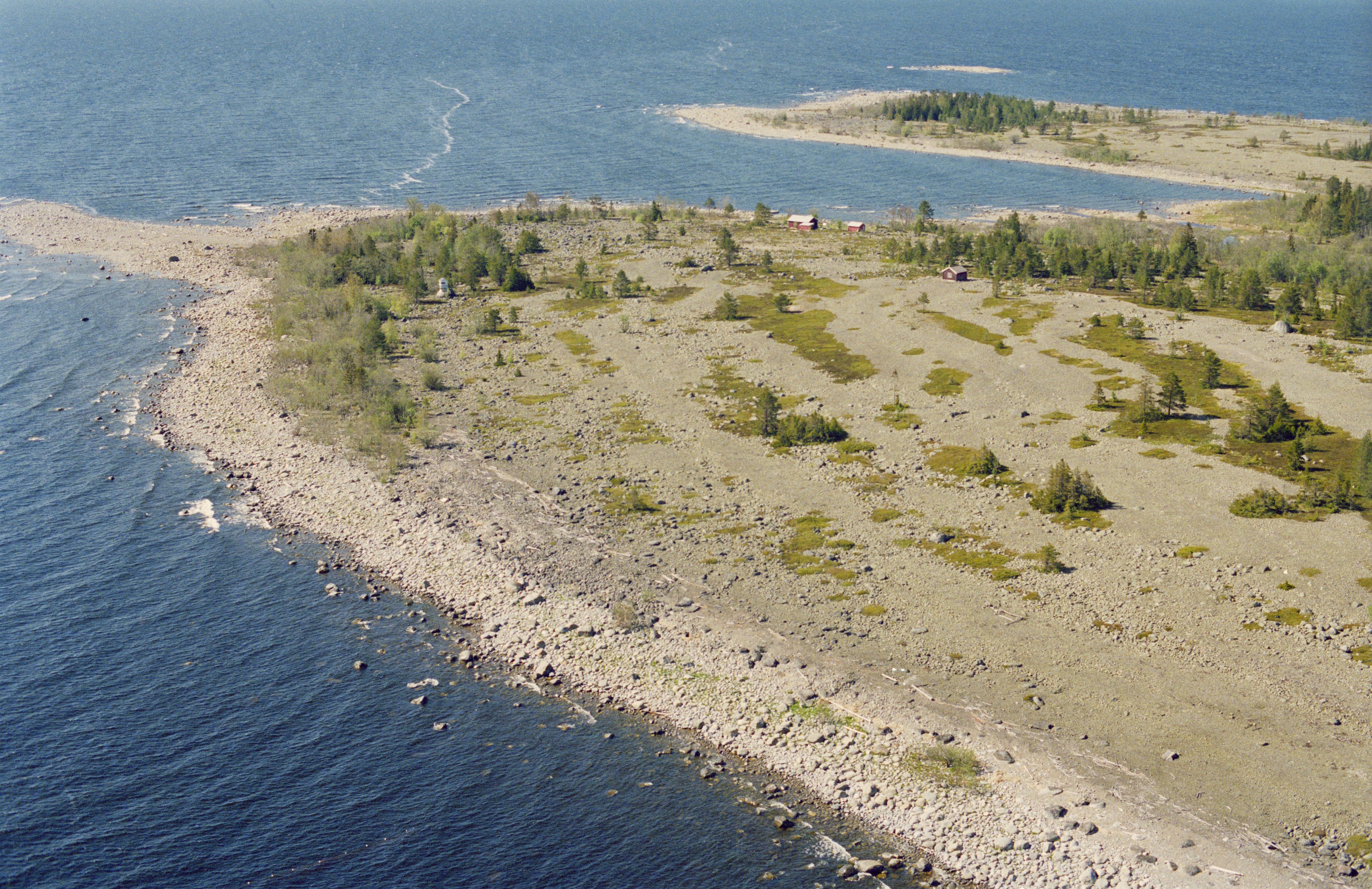 Beskrivning: Ön Snöan i Snöanskärgården i Örefjärden. Udden Österskatan i öns södra del. Udden Västerskatan uppe till höger. Till höger över bildens mitt Snöans kapell RAÄnr Hörnefors 47:1. Bilden är tagen mot (väderstreck): SV