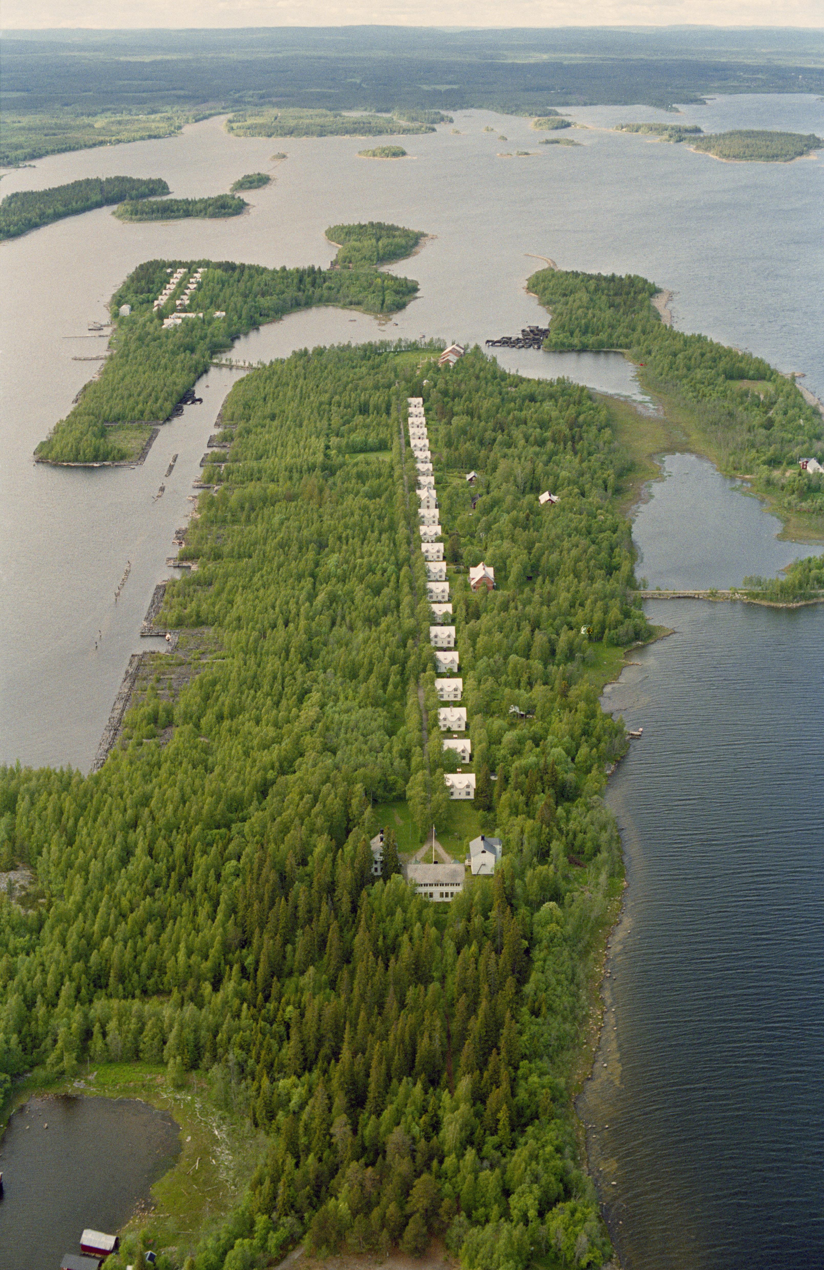 Beskrivning: Ögruppen Norrbyskär i norra delen av Örefjärden. Tidigare industriort med ångdrivet sågverk, arbetarbostäder, herrgård, skola med kyrksal, kägelbana m.m. anlagd på 1890-talet. Norrbyskärs skola med kyrksal under bildens mitt. Bilden är tagen mot (väderstreck): N